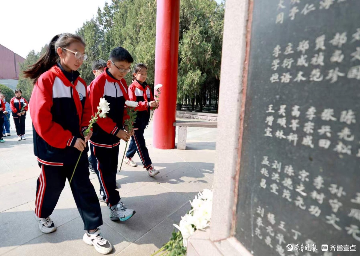 清风寄哀思,薪火传英烈。时值清明临近,缅怀革命先烈,传承红色基因的庄重氛围愈发浓厚。4月1日,位于临沂市蒙阴县垛庄镇的孟良崮战役烈士陵园迎来各地群众、师生及各界团体前来开展红色研学,祭扫英烈活动。公茂栋摄
