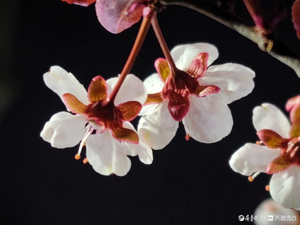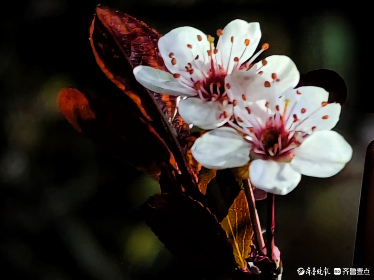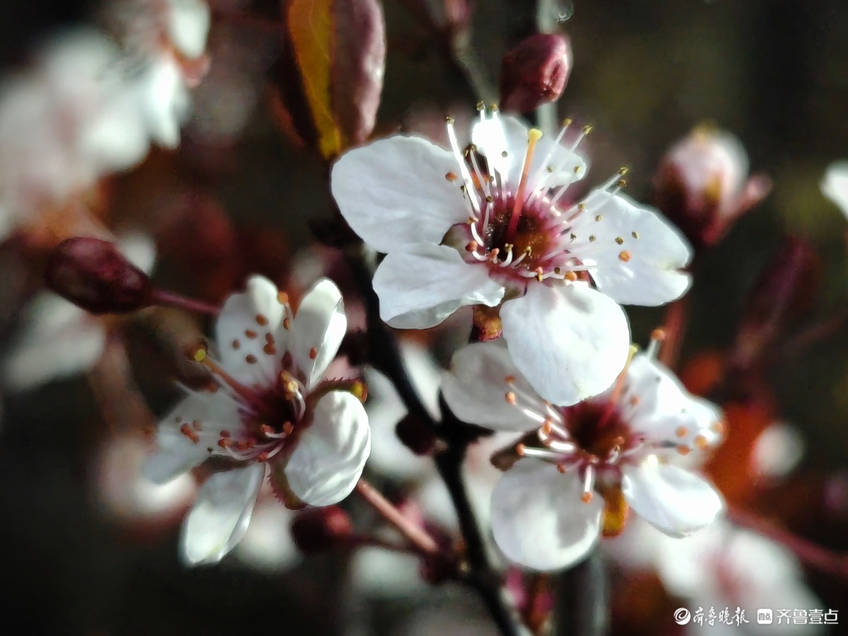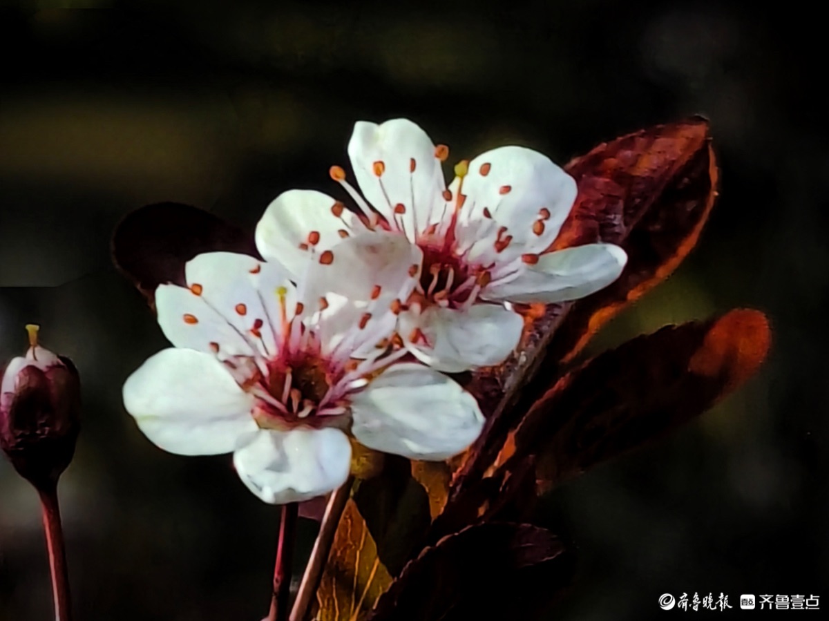 3月28日,傍晚,漫步林荫小道,只见路边的紫叶李悄然绽放,尽显别样风姿。 高军 摄