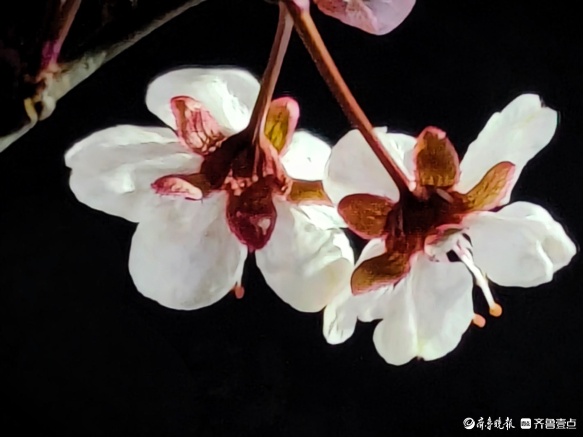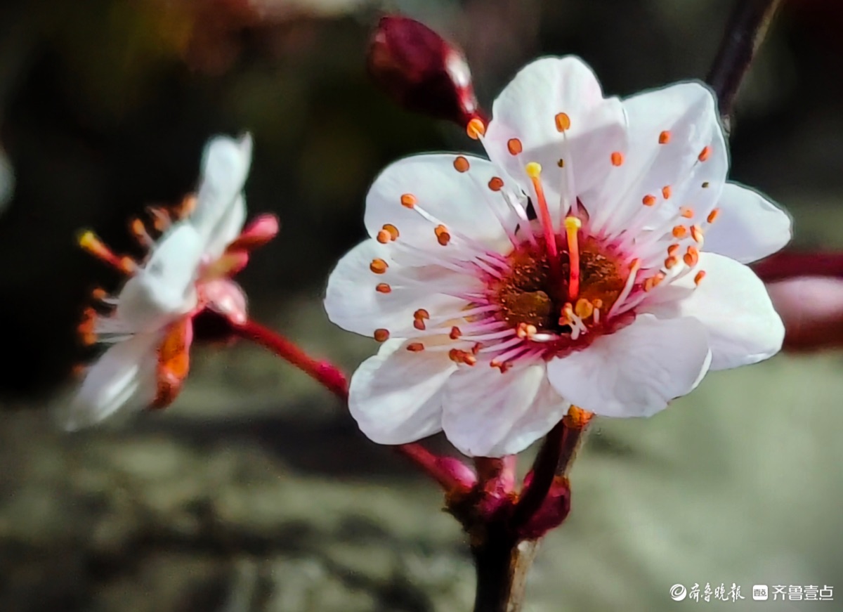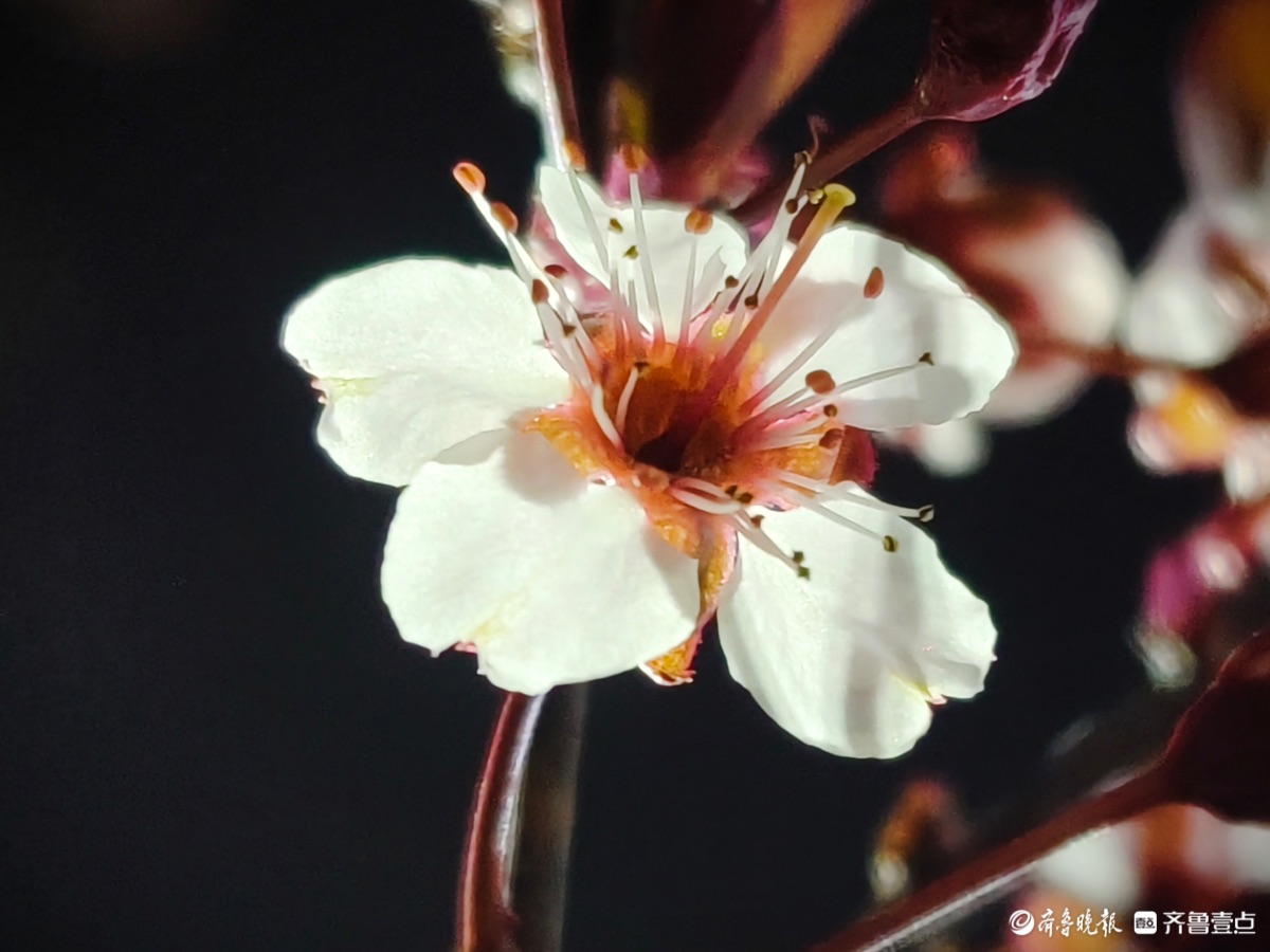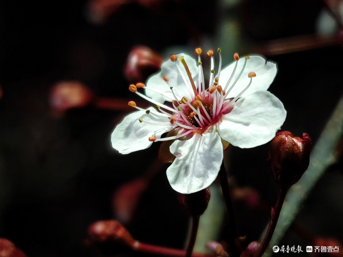 3月28日,傍晚,漫步林荫小道,只见路边的紫叶李悄然绽放,尽显别样风姿。 高军 摄