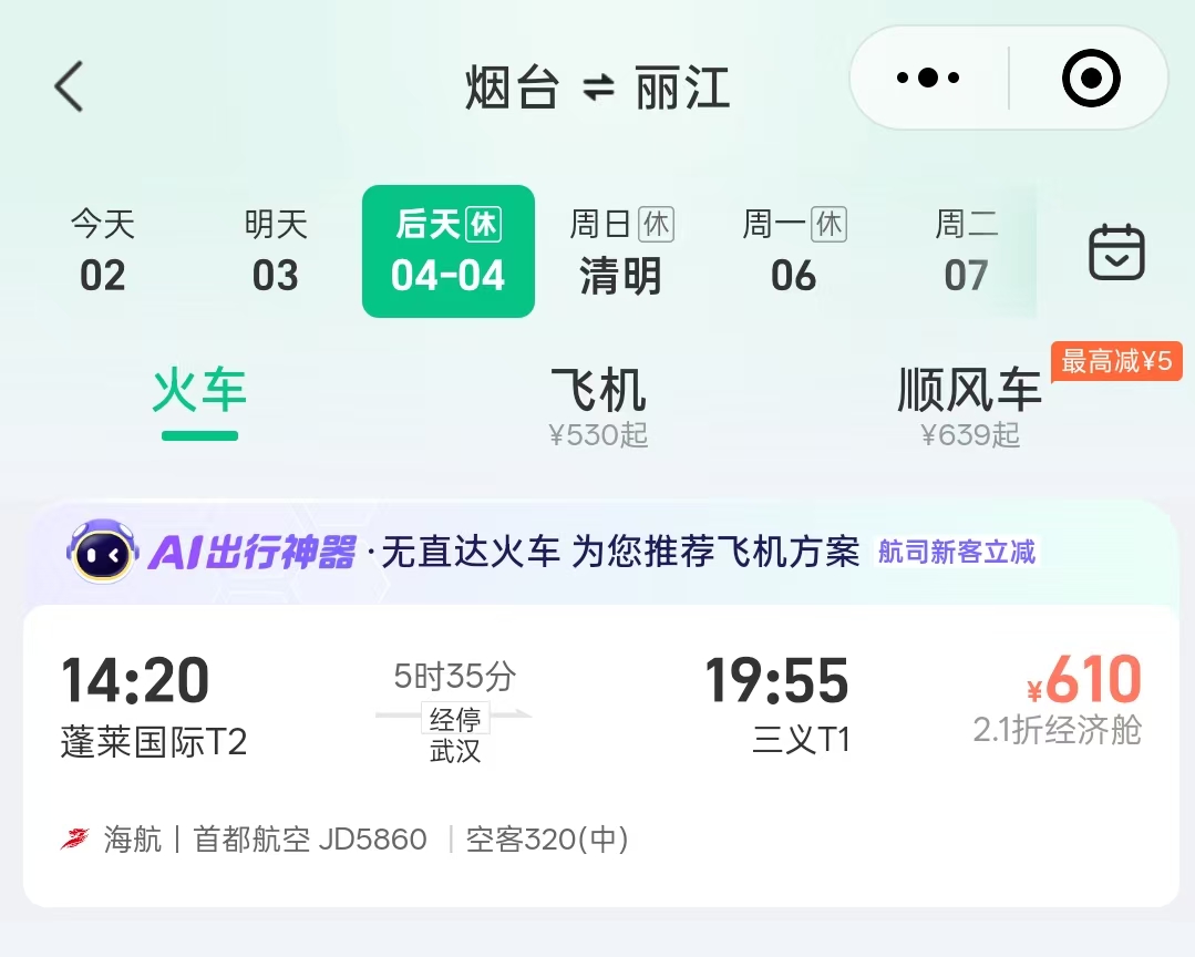 丽江—烟台: