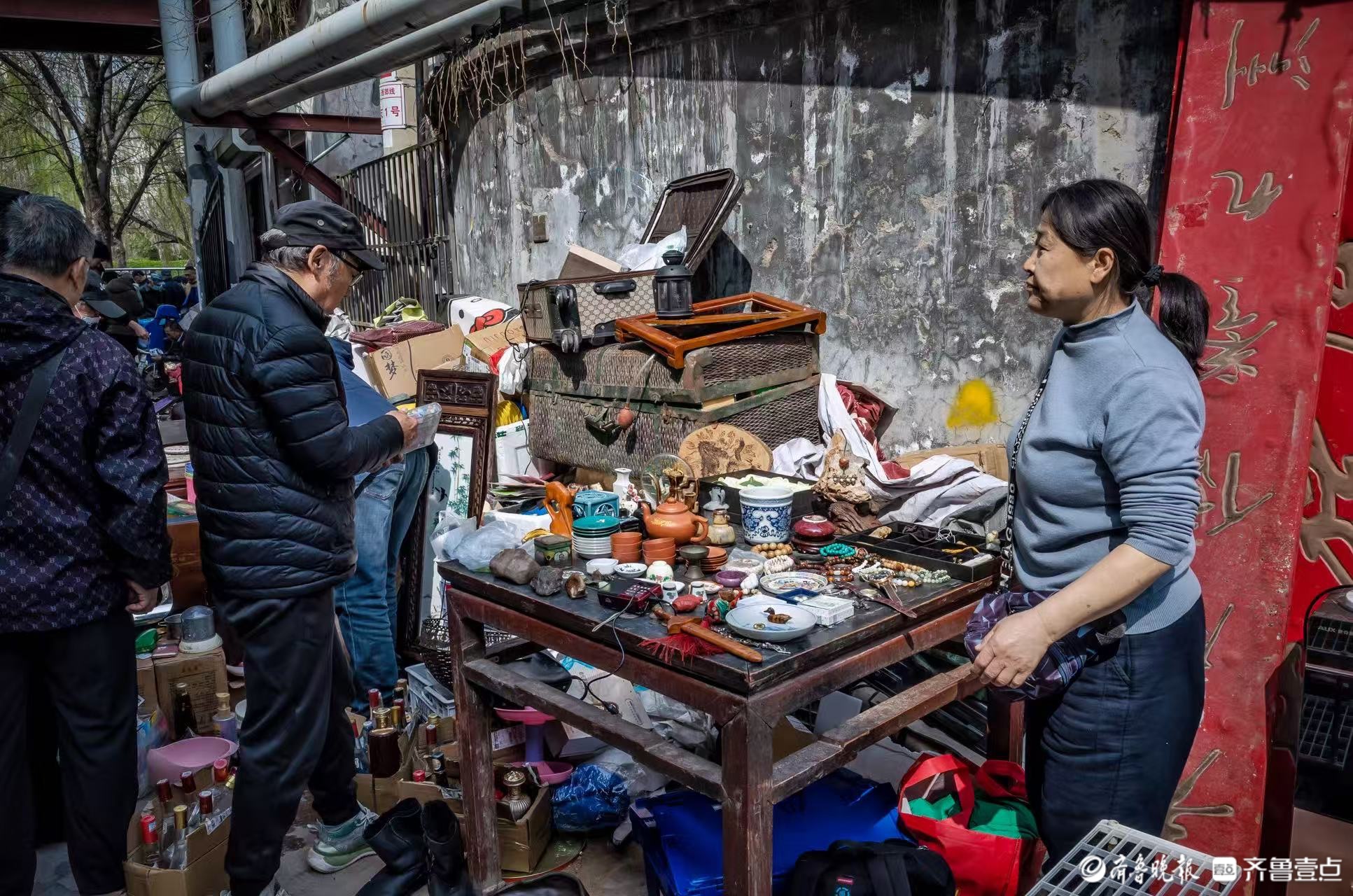 3月29日,济南市天桥区东工商河路。老墙根下的旧物市集,日光把岁月晒得温热。每一件带着包浆的小物件,都是城市藏不住的烟火与故事。俞军摄