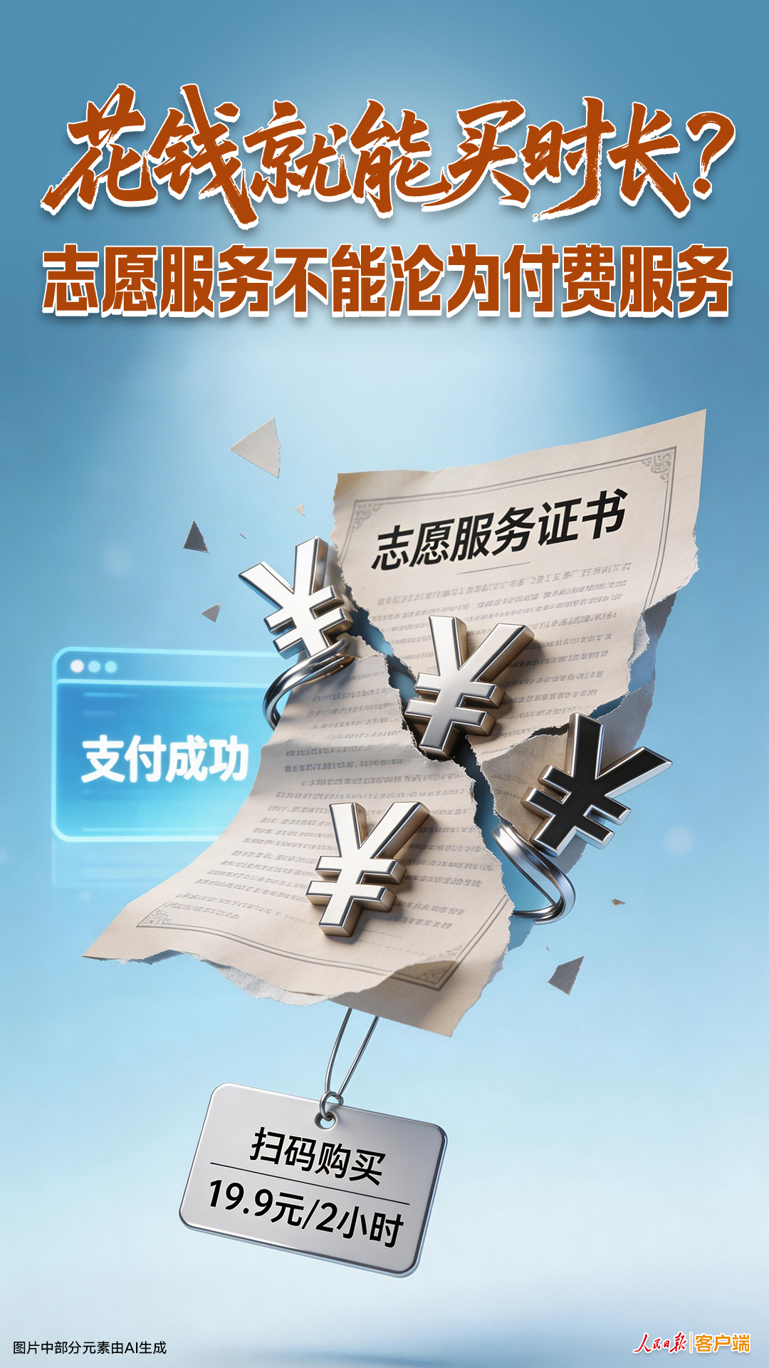 花钱就能买到志愿时长,无异于考试“作弊”。当“规则可以变通”“荣誉可以购买”,不仅会消解志愿服务的教育意义,更会在青少年心中播下漠视规则、利益至上的种子。这对那些脚踏实地、热心公益的学生也是一种不公。