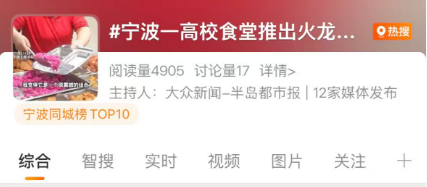 上榜宁波同城热搜榜第4位