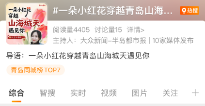 上榜青岛同城热搜榜第4位