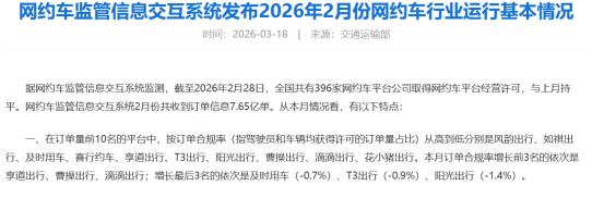 监管数据的“红灯”,直接揭示了花小猪的合规危机。交通运输部发布的《网约车监管信息交互系统发布2026年2月份网约车行业运行基本情况》显示,在订单量前10名的网约车平台中,滴滴出行及其旗下花小猪出行的订单合规率(即驾驶员和车辆均获得相关许可的订单量占比)排名垫底。这一刺眼的排名背后,是花小猪平台上大量“无证车辆”“无证司机”违规提供服务的现实,也意味着其合规管理存在严重漏洞,未能履行平台应有的监管责任。