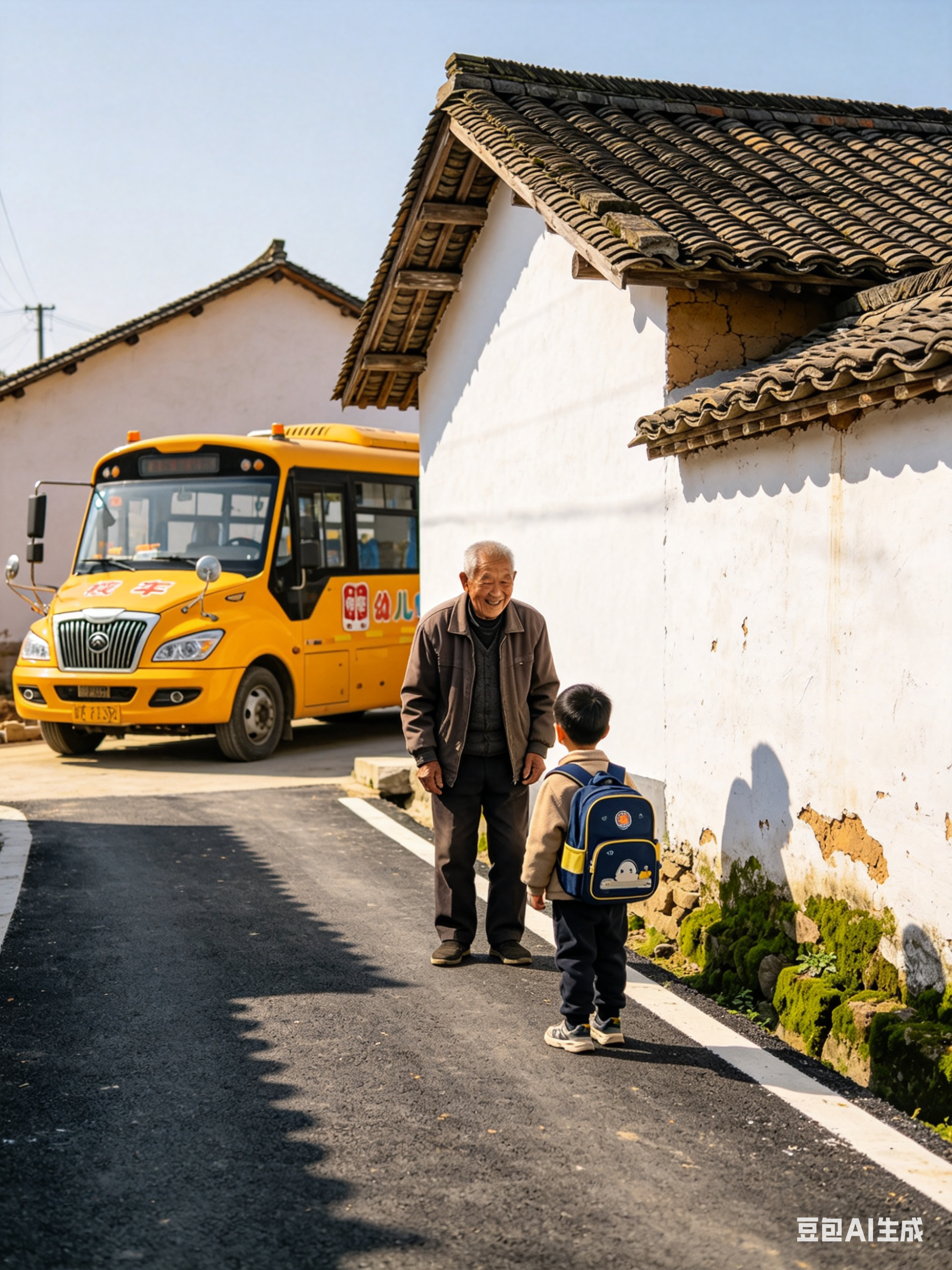 夕阳西下,金辉洒在老屋的墙上、青石板上,也洒在乐乐明亮的笑脸上。望着这一幕,我心里满是安稳与幸福。我知道,乐乐的童年,不会再有我当年的孤单与委屈。穿梭在村路上的黄色校车,会载着一代又一代农村孩子的梦想,在时代的春风里,向阳生长,绽放光芒。