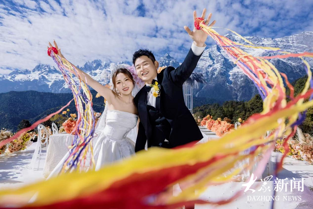 作为婚俗改革的推动者,更是一名党员干部,尹童一深知“喊破嗓子,不如做出样子”。在与双方家人反复沟通、取得全家一致支持后,2025年2月,她选择用一场“旅游+婚礼+婚纱照+蜜月”一站式的目的地婚礼,在云南丽江的雪山脚下,完成了自己的人生大事。