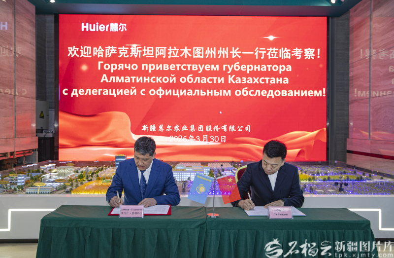 3月30日,哈萨克斯坦阿拉木图州代表团代表与新疆慧尔农业集团股份有限公司代表签署合作备忘录。巨海成摄