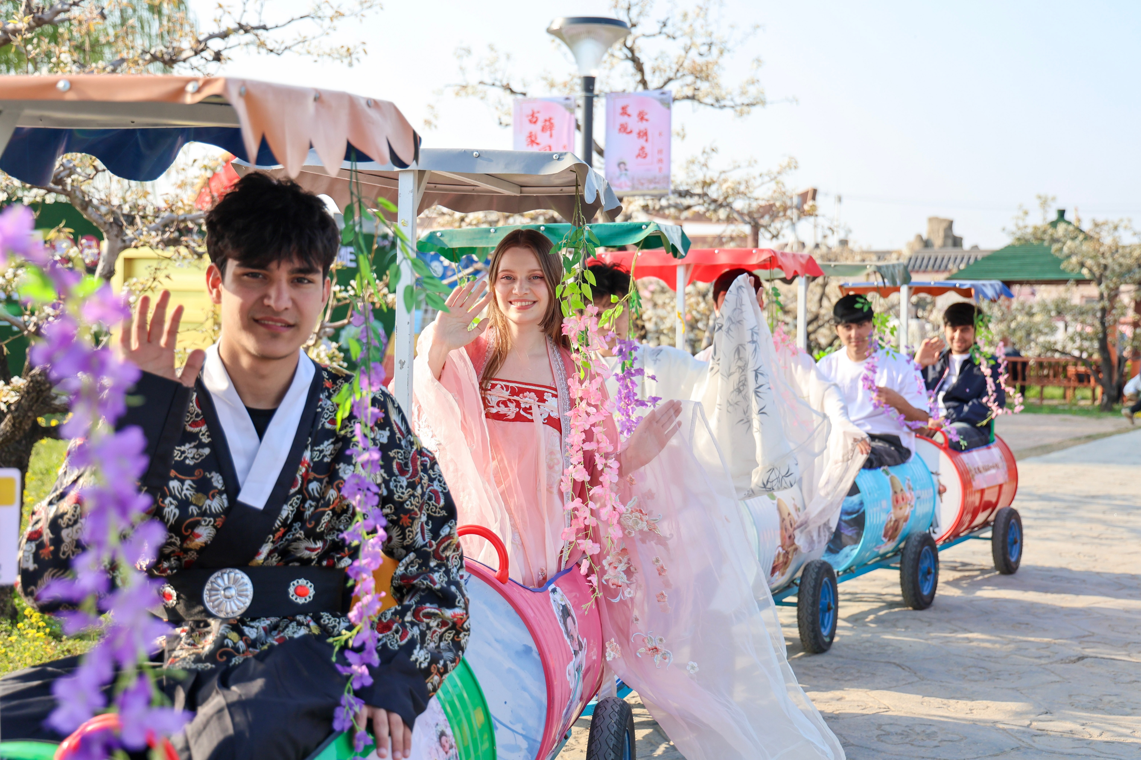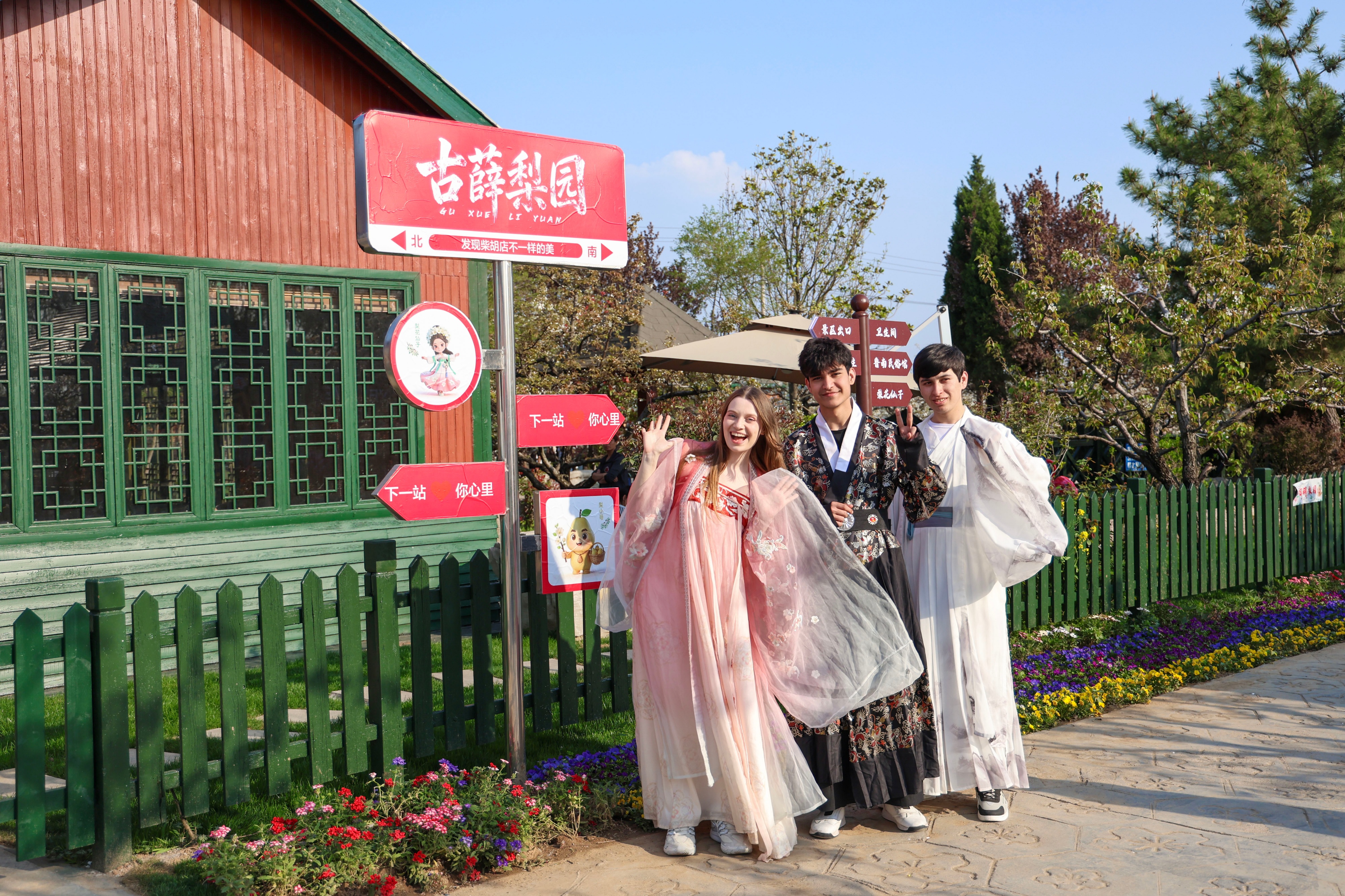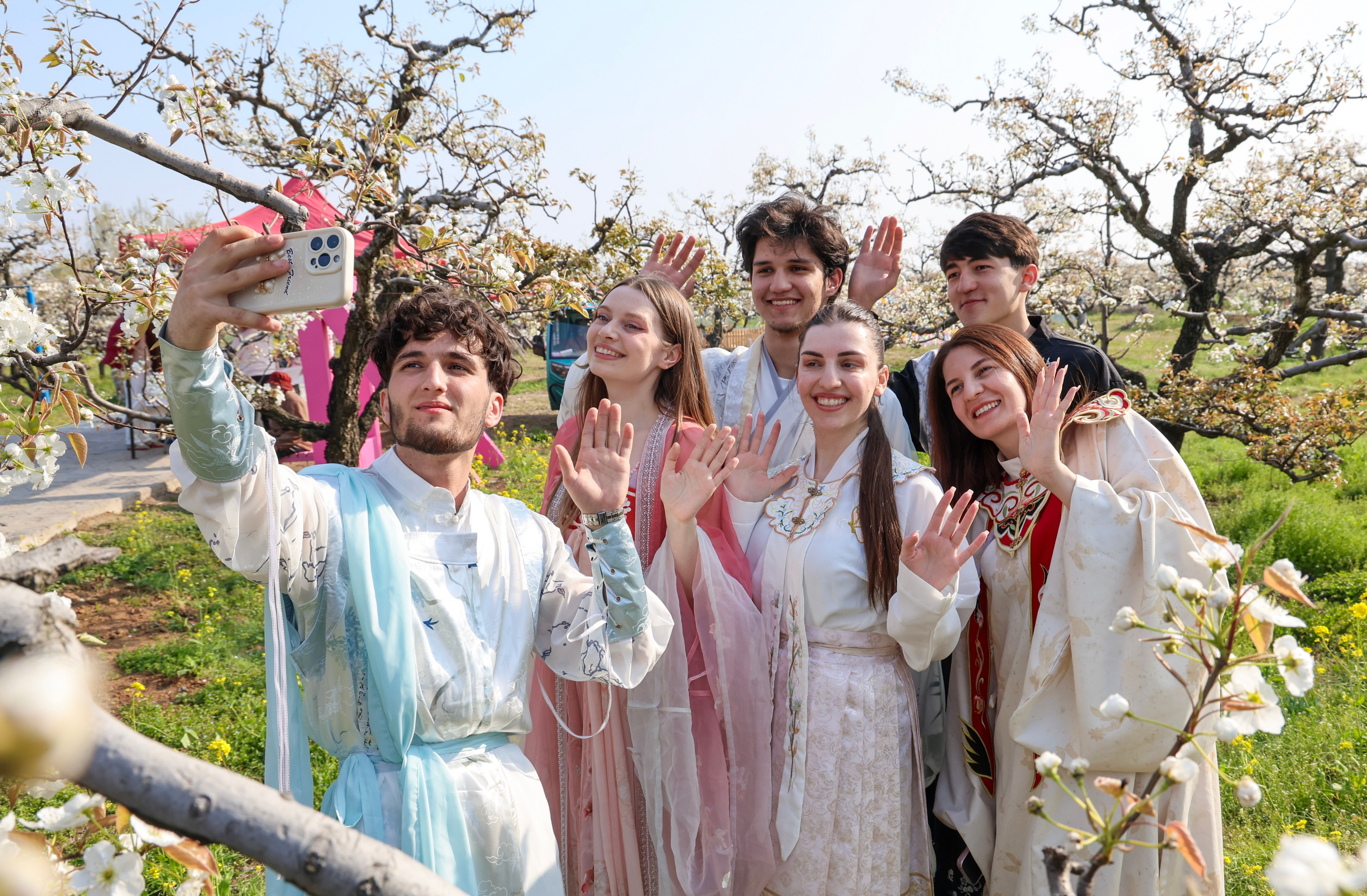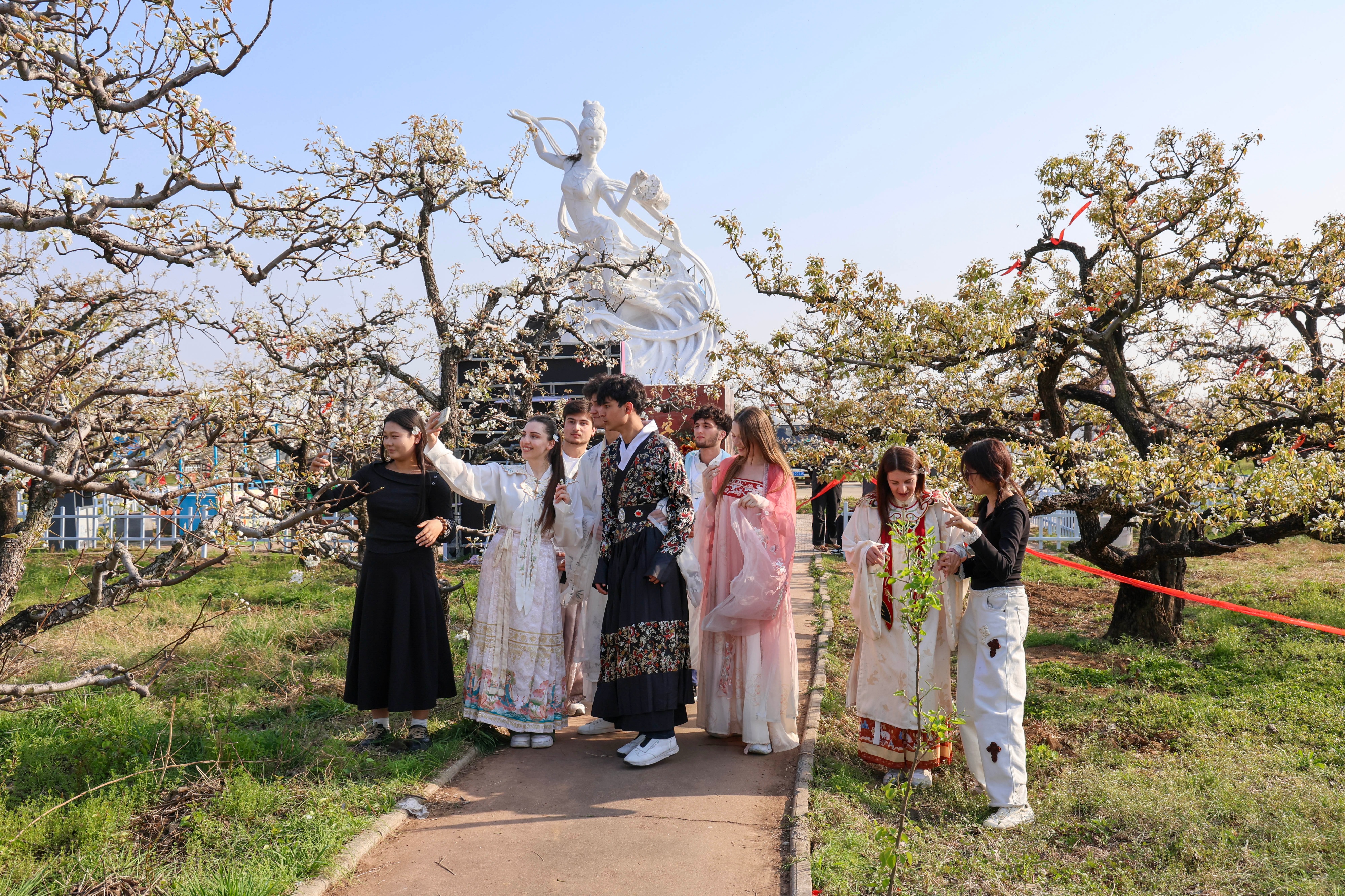 清明节前,在枣庄滕州市柴胡店镇刘村梨园,20余名来自塔吉克斯坦和土耳其的留学生,通过穿汉服、赏梨花、习民俗的过程,深度体验中国传统文化。(大众新闻记者孟令洋通讯员宋海存)