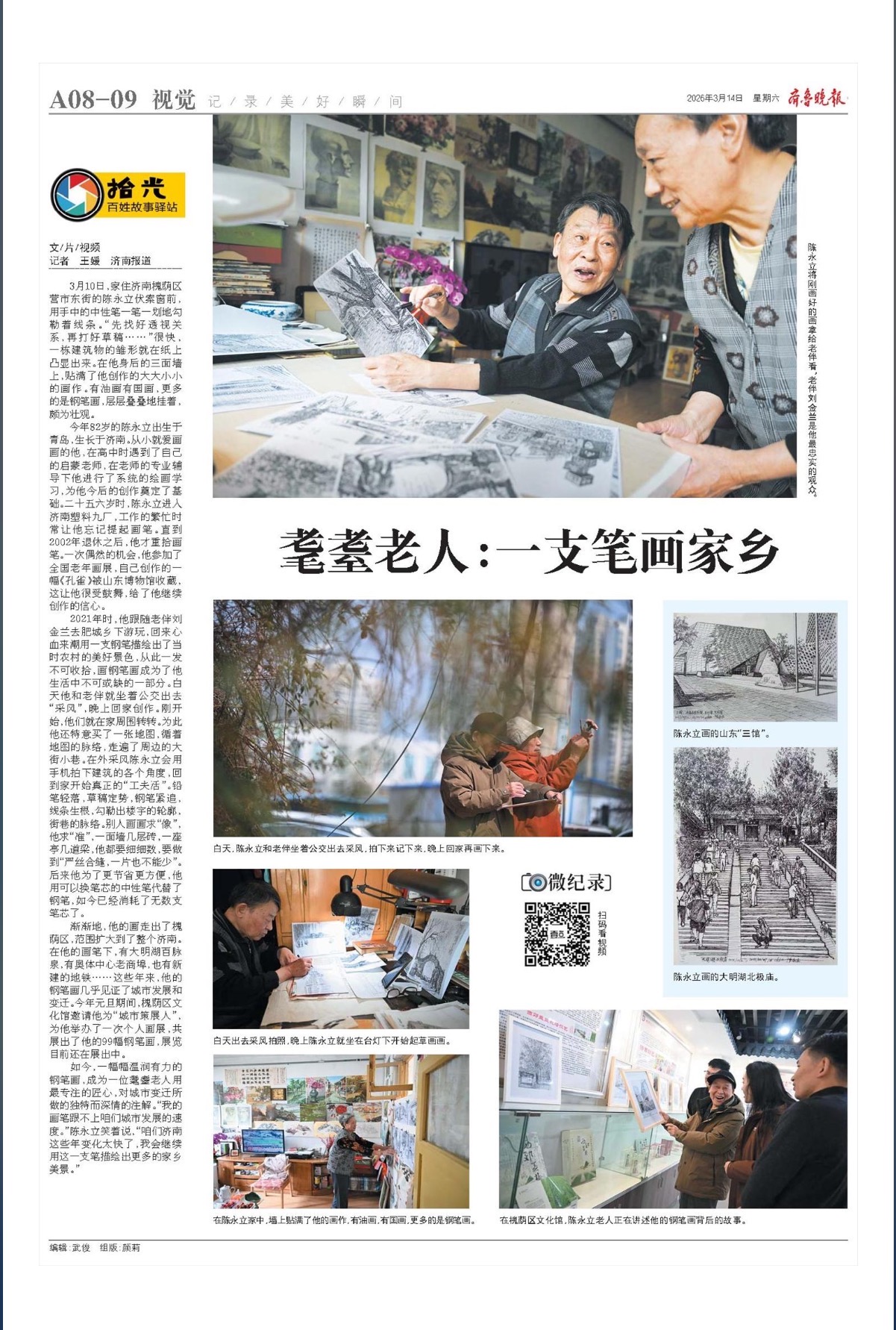 如今,一幅幅温润有力的钢笔画,是一位耄耋老人对城市变迁所做的独特而深情的注解。“我的画笔跟不上咱们城市发展的速度。”陈永立笑着说,“咱们济南这些年变化太快了,我会继续用这一支笔描绘出更多的家乡美景。”