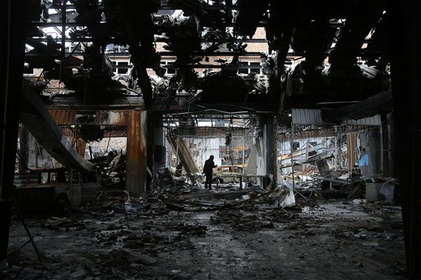 3月28日,在伊朗首都德黑兰,当地居民查看一家损毁的汽车服务中心。新华社