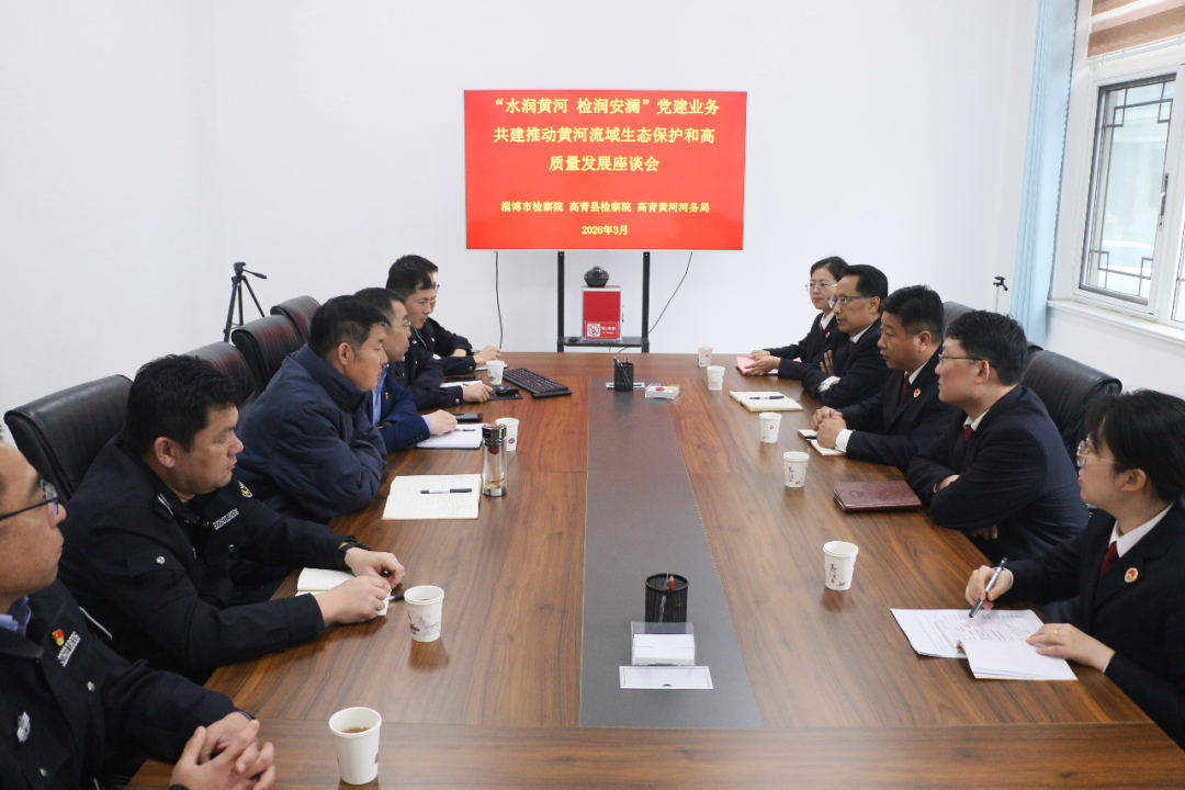 淄博市人民检察院、高青县人民检察院与县黄河河务局联合开展党建共建活动,全体党员重温入党誓词,共话黄河保护使命。座谈会上,三方围绕黄河流域生态保护、公益诉讼协作、行政执法与检察监督衔接等内容深入交流,分享工作经验、探讨协作机制,进一步凝聚“党建引领、检河联动、共护黄河”的强大合力,为黄河(高青段)生态保护与高质量发展注入红色动能。