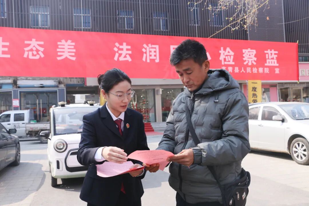 在县城青城路,检察干警与政法委、河务局工作人员组成联合普法队伍,通过悬挂主题横幅、发放《中华人民共和国黄河保护法》宣传手册、设立法律咨询台等方式,开展集中法治宣传。干警们用通俗易懂的语言,向过往群众讲解《中华人民共和国黄河保护法》的核心内容、禁止性规定及法律责任,结合涉黄河生态保护典型案例以案释法,耐心解答群众关于水资源保护、生态修复、违法追责等方面的疑问,引导群众树立“保护黄河、人人有责”的法治意识,营造全社会共同守护母亲河的浓厚氛围。