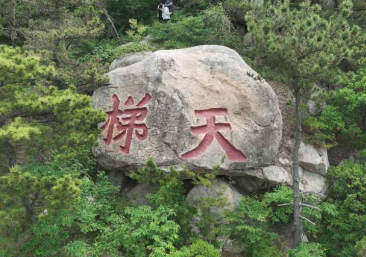 旅程伊始,从八水河拾级而上,在前往龙潭瀑的山路左侧,可抬头仰望上世纪八十年代中国书法家协会会员王梦凡所书“天梯”二字,方正峻拔,如斧凿刀劈,既记录古代崂山交通之艰险,又以书法力度强化“通天之境”的视觉震撼。