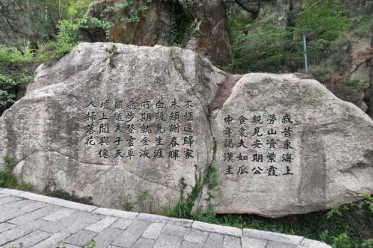 在太白石下方10米处,上世纪八十年代高小岩先生的“李白《寄王屋山人孟大融》”诗刻熠熠生辉。“我昔东海上,崂山餐紫霞”,诗仙千古名句镌刻崖间,与碧海青山同辉,道出崂山千年仙山美名,成为线路中极具诗意的亮点。