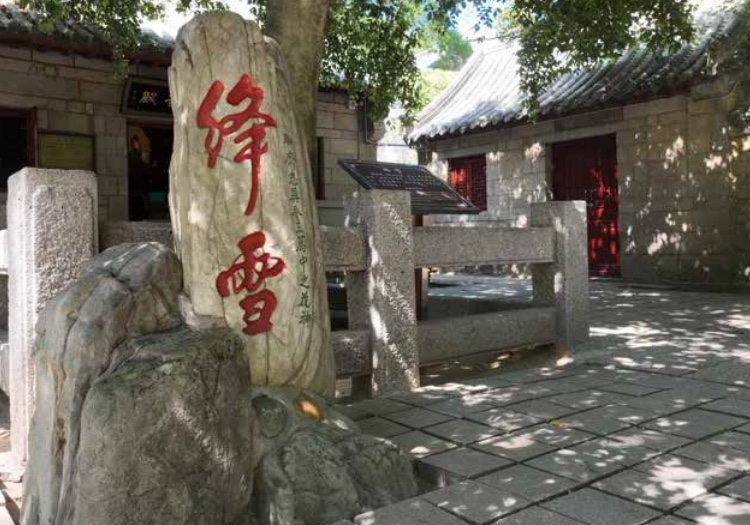 进入有着2100多年历史的太清宫,在逢仙桥分岔路口北侧,看民国时期康有为所作“康有为诗刻”笔墨洒脱,气韵生动。近代名家康有为游历崂山,有感于山海胜境与道教文脉,挥毫赋诗题咏,“天上碧芙蓉,谁掷东海滨”,字里行间尽是对海上仙山的赞叹,为石刻长廊添上浓墨重彩的一笔。步入三皇殿,“邱祖太清宫诗刻十首”为全真教宗师丘处机于元木亦坚汗二年登临太清宫所作诗篇。诗词意境高远,书法古朴,既抒悟道之心,又赞崂山之美,是道教文化与诗词文化相融的经典代表。紧邻其侧的“元太祖颁给丘处机金虎符文”石刻,记载着元太祖赐给丘处机真人的金虎符文字内容,彰显着皇家对道教与崂山的重视,是崂山作为道教名山地位的有力佐证。进入救苦殿,便可以看到蒲松龄笔下《香玉》开篇中所提到的花神“绛雪仙子”,一旁的“绛雪”石刻是1980 年至1982 年青岛市委宣传部原部长董海山所题,双钩镌刻技法承续志异文脉,使太清宫古木平添文学灵韵。