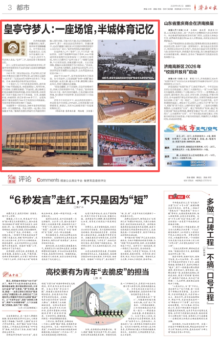 “场馆会翻新,岁月会流转,但皇亭的精神不变,济南人的体育情怀不老。”乔金说,“皇亭体育馆从来不是一栋冷冰冰的建筑,它是老城区的体育魂,是无数孩子的冠军梦,是老百姓家门口的运动场。”