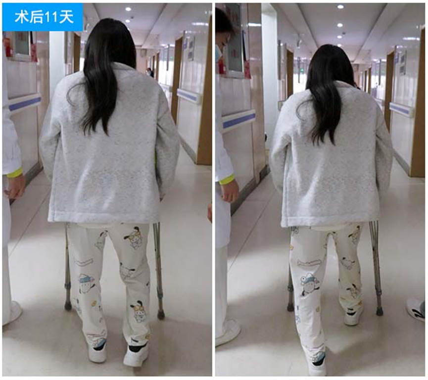 术后,医院依托快速康复理念和责任制整体护理模式,为小舒制定了个性化康复计划,医护人员每天定时查房、指导康复训练,耐心讲解术后注意事项,细致呵护她的恢复过程。惊喜的是,术后不久,小舒就能顺利下地行走,康复进度远超同类先髋高脱患者。“比我想象中好太多了,手术一点都不疼,恢复得也特别快。”小舒脸上洋溢着久违的笑容。