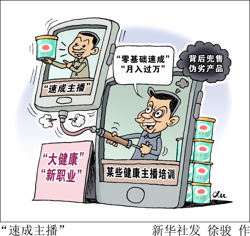 打着“大健康”“新职业”旗号,以“零基础速成”“月入过万”为噱头,一些机构推出所谓健康主播培训。嘴上讲科普,背后兜售伪劣产品;表面是培训,实为“割韭菜”。这些行为既侵害求职者利益、误导公众认知、延误治疗,还严重扰乱健康传播秩序。