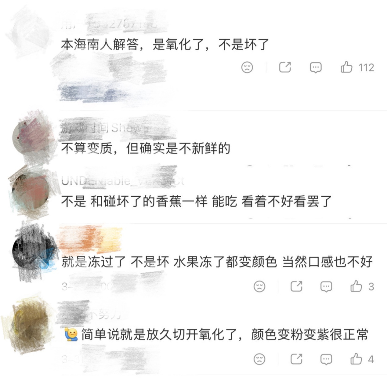 也有消费者“科普”椰肉变紫并不一定是变质——