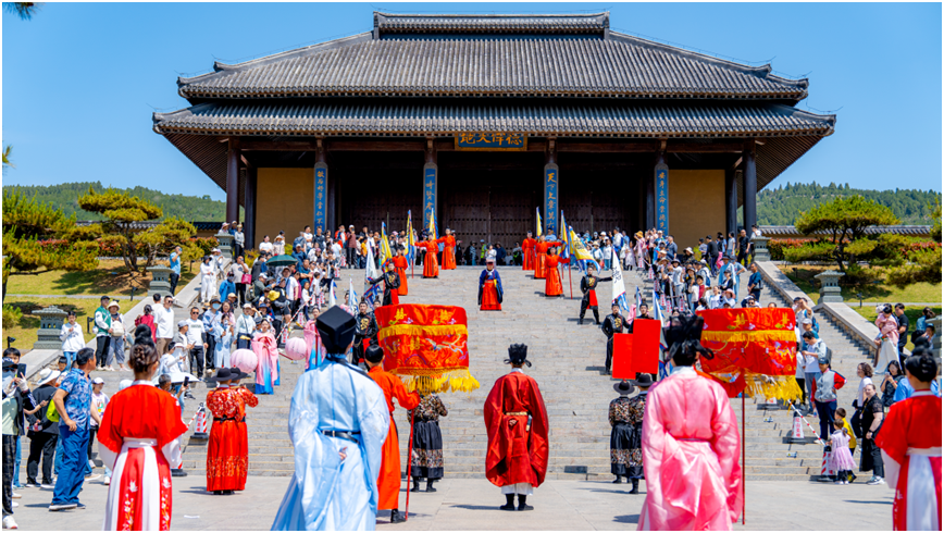 疗休养行程中,职工们沉浸式体验了大型礼乐教学《金声玉振》。该演出以“世界的孔子”和“孔子的世界”为立意,融合诗、乐、舞等古典艺术形式,以四季更迭、人生九大阶段所涉及的重要仪式为主线,展现了一个普通人在礼乐熏陶中成长、修身、齐家、治世的生命历程。“在礼乐声中感受中华文明的博大精深,这种体验太震撼了。”来自基层一线的职工王师傅激动地说。