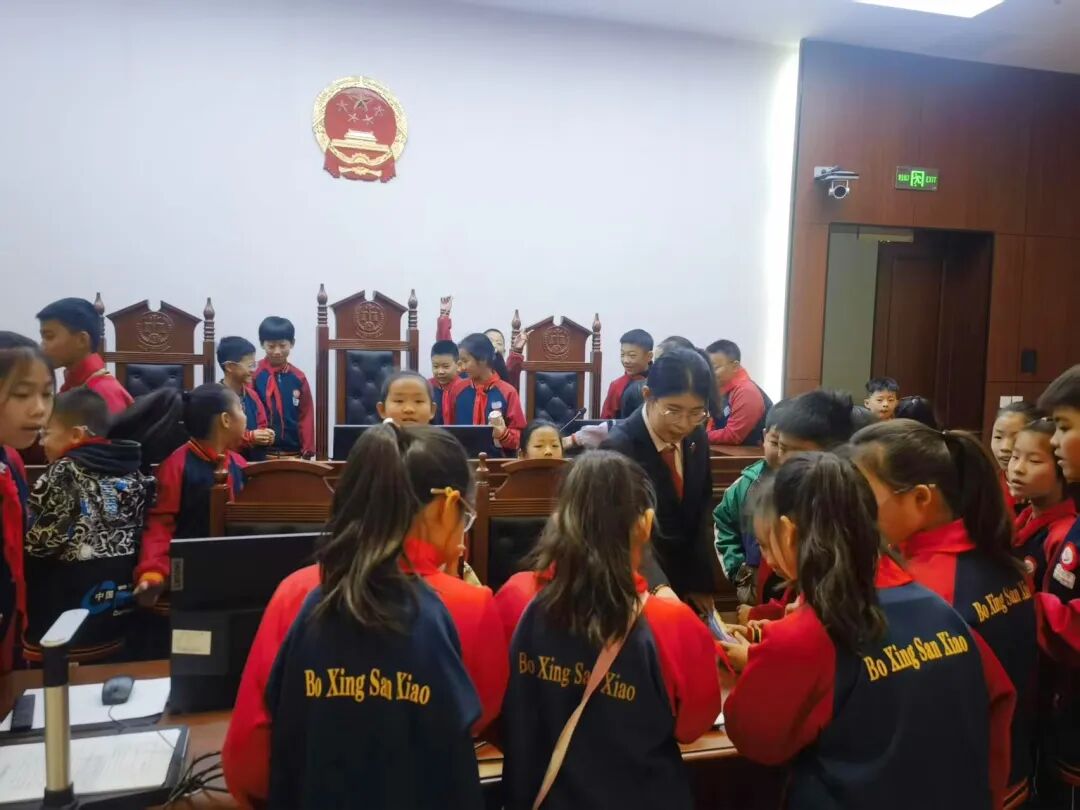 为深入贯彻落实青少年法治宣传教育工作要求,进一步筑牢未成年人法治思想根基,博兴县人民法院开展“法庭开放日” 活动,邀请博兴县第三小学学生走进法院,开启一场沉浸式法治研学之旅。