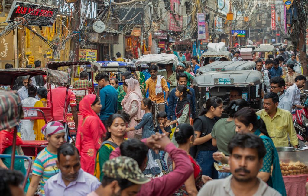 2023年4月26日,人们聚集在印度新德里的一处市场。新华社发