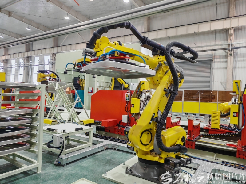 新疆大道实业投资有限公司,冲压模具共享中心油箱储气筒车间,自动化设备在作业。石榴云/新疆日报记者 郭宏磊摄