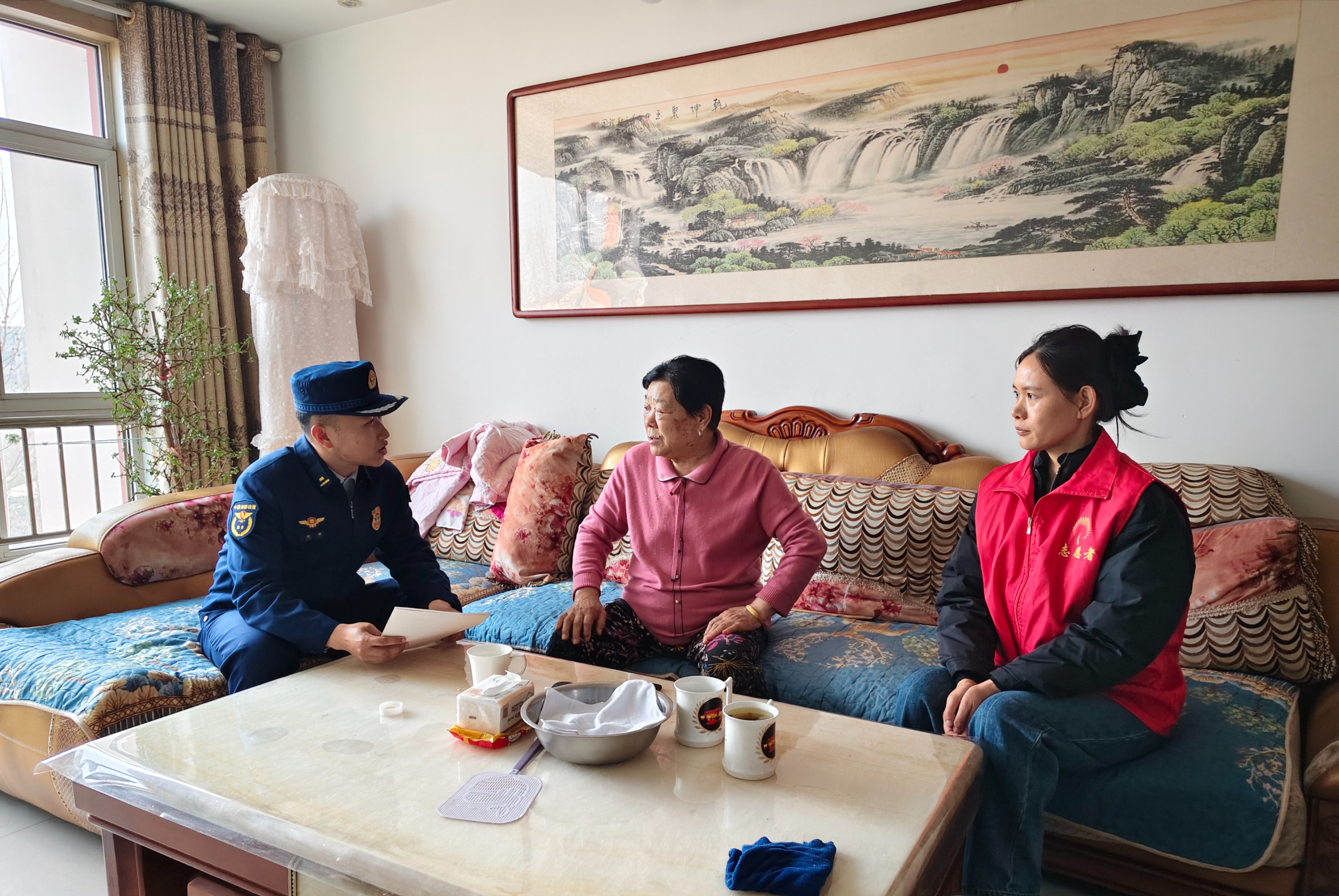 工作人员将防火面罩及应急逃生用品免费送到老人家中,把“安全课堂”搬进家门、延伸到身边,用一份沉甸甸的“安全礼”守护“夕阳红”。