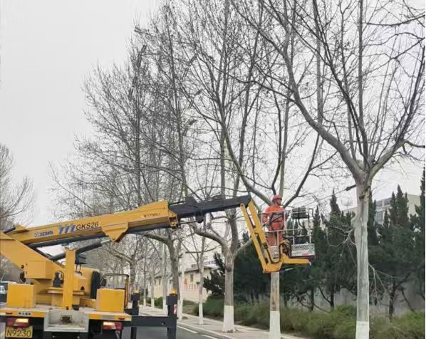 治理飞絮,源头是关键。执法局园林科针对不同区域、树龄和生长状态的杨树,实施分类精准修剪策略。在彩虹路(杨树)、华侨城小学附近(法桐)以及金科学府社区、淄博中学北侧万章路、小庄社区、西四路、西五路、西七路等学校和人群集中路段,采用“重剪降冠”方式,适度截断主干、清除花絮枝,从源头上最大程度减少飞絮产生。而在文体公园、火炬公园、玉龙湖、政通路等区域,则运用“短截疏剪”手法,在保留树木绿荫功能的同时,有效控制飞絮扩散范围,实现“减絮不减绿、降絮不降景”的治理目标。截至目前,城区已完成5000余株杨树的修剪任务,飞絮源头管控已初见成效。