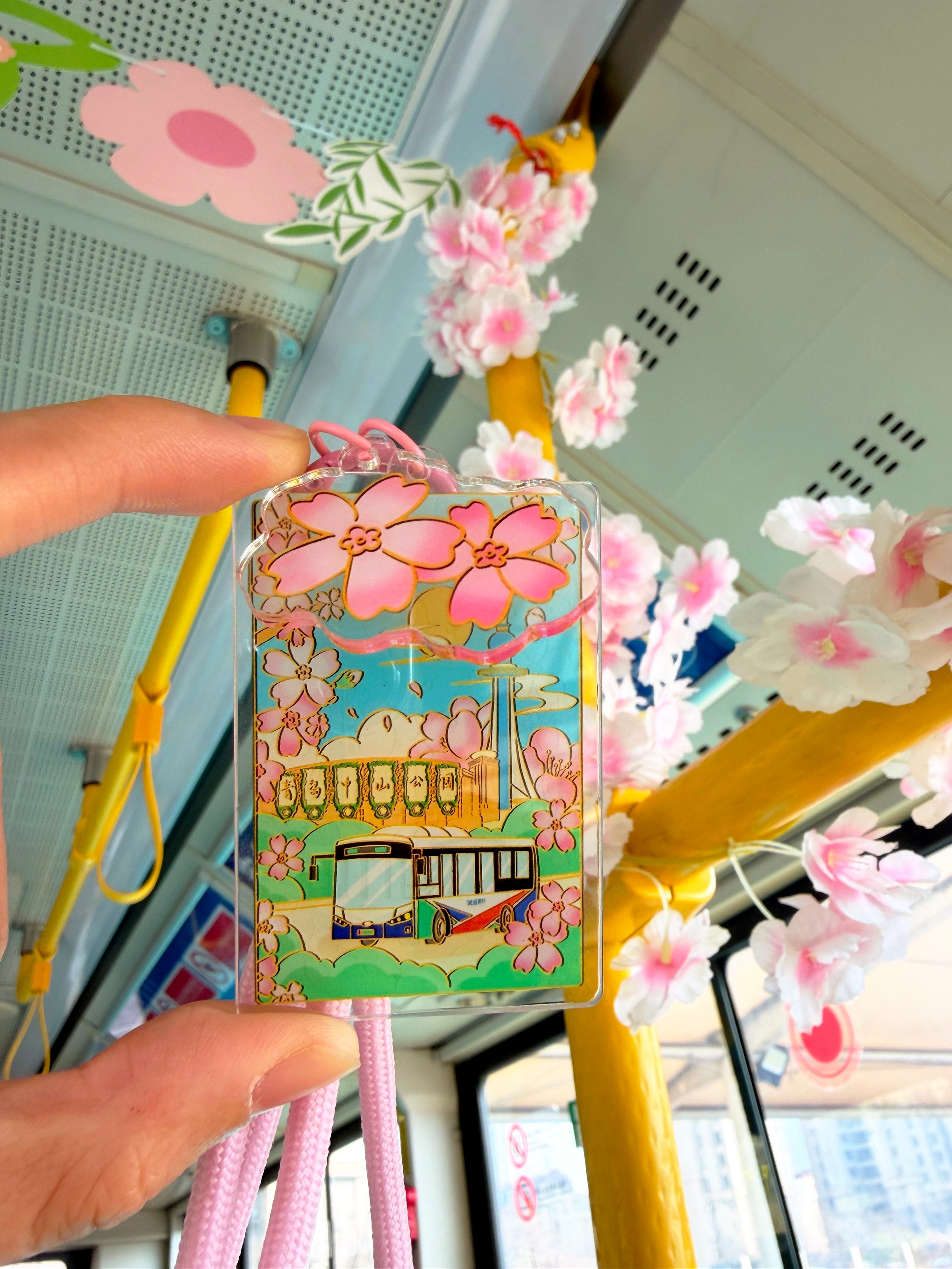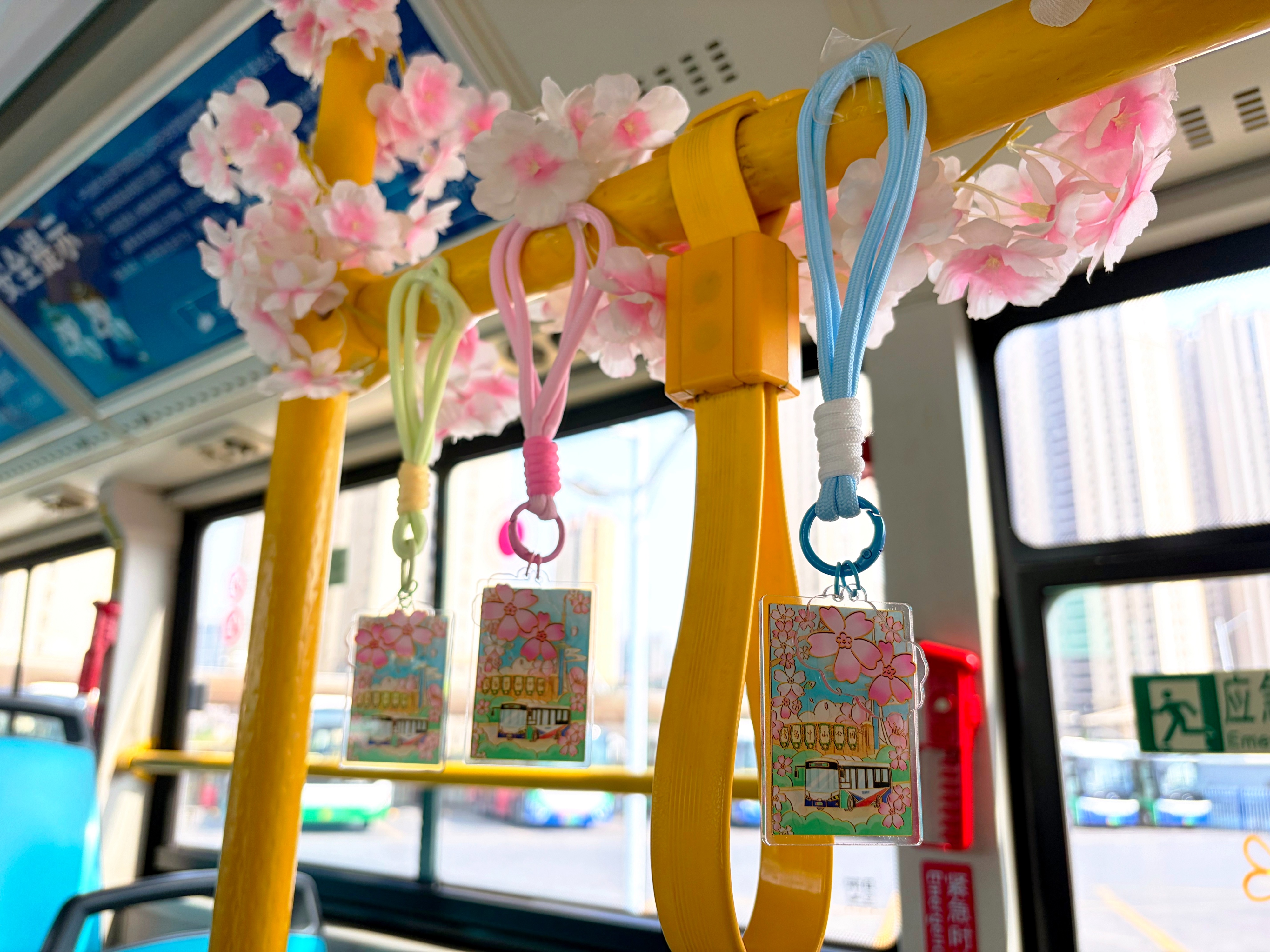 为增添春日出行趣味,市南巴士公司同步推出“春日限定文创”互动活动。市民游客乘坐228路赏春区间车或7路赏樱专车时,随手拍摄美照或合影,发布到小红书、微博等媒体平台,带上话题#赏春专车、#赏樱专车或#坐一辆公交,游山海青岛,发布成功即可领取专属定制钥匙扣;内容点赞满20个,还能额外获赠帆布包一份,让市民在赏春赏樱途中收获一份春日惊喜。