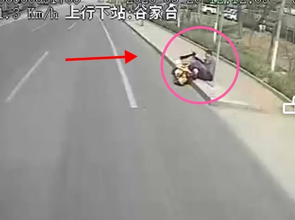 3月26日上午12点10分左右,K5路驾驶员岳超驾车行至姚家岭站点附近,突然发现路边一位老人摔倒在地,电动车重重压在身上,老人动弹不得。