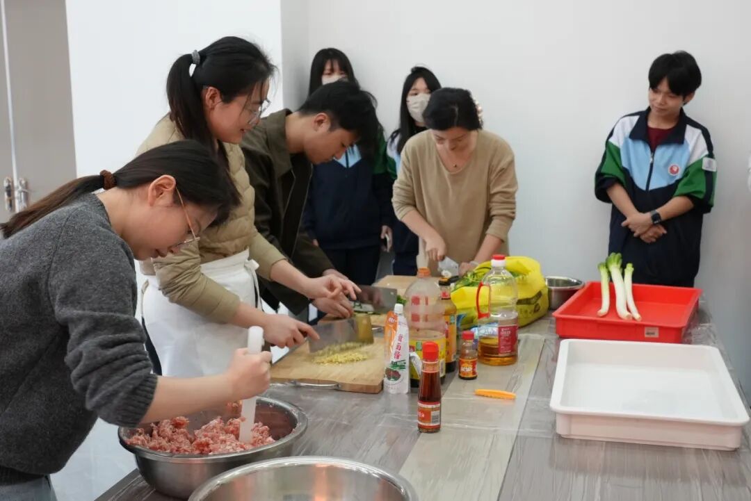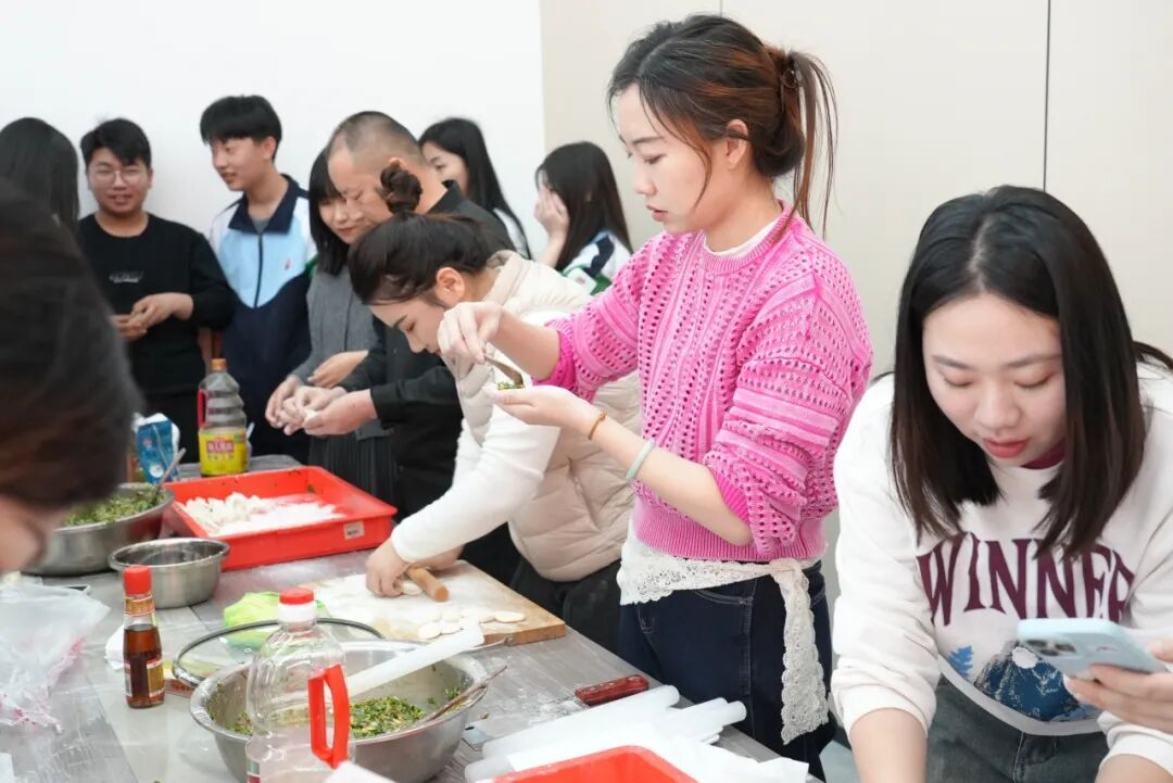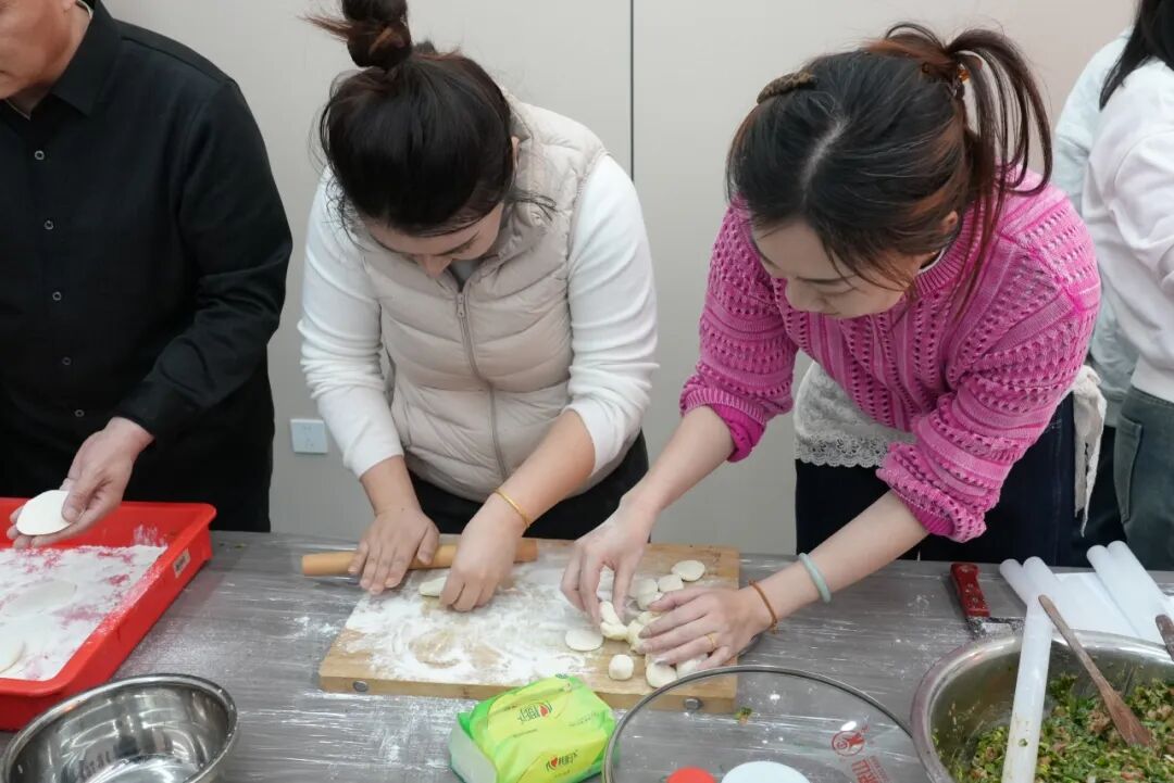 案板轻响,笑语纷飞。平日里对着镜头敲着键盘的老师和同学们,此刻都围在长桌旁,化身包饺子的“主力军”。