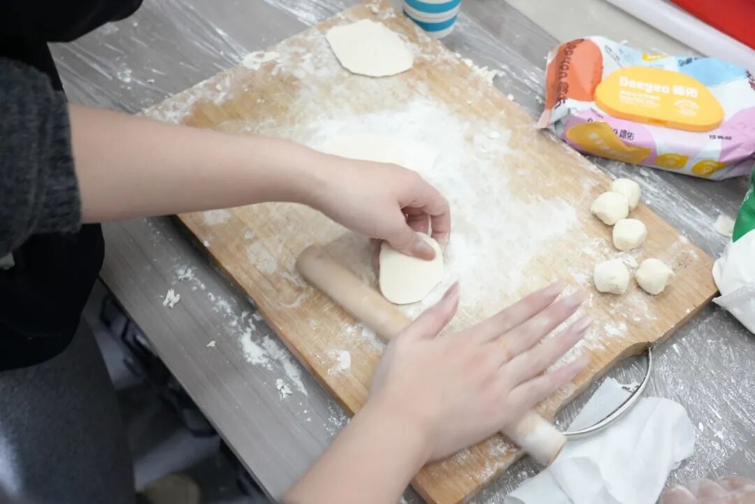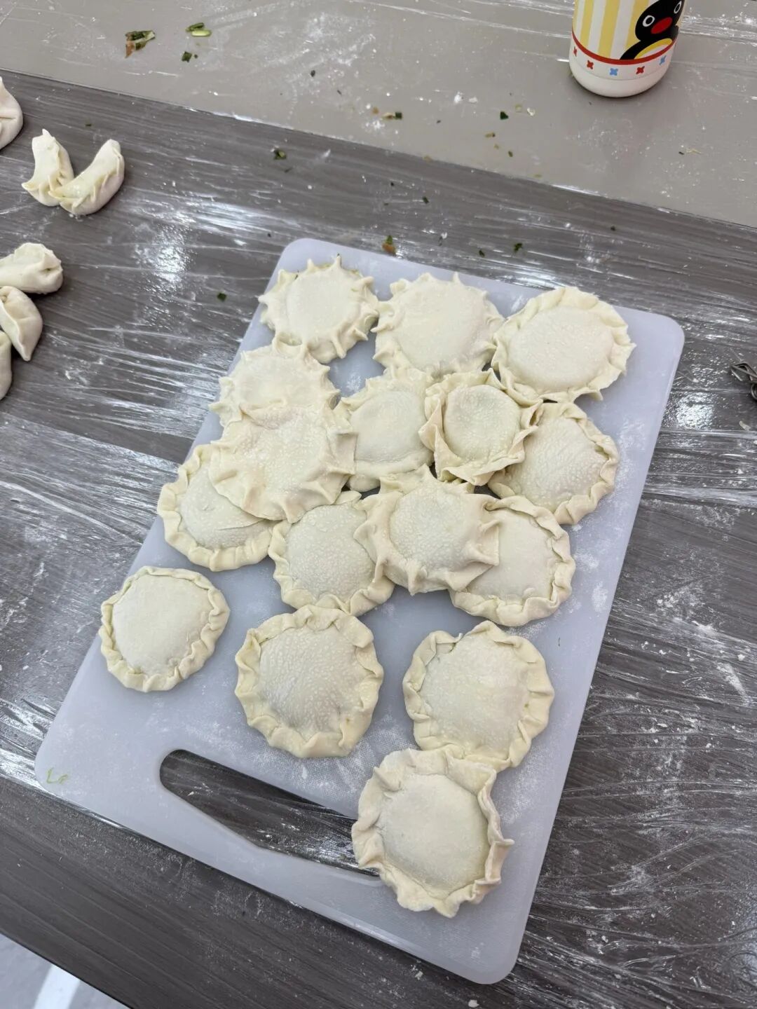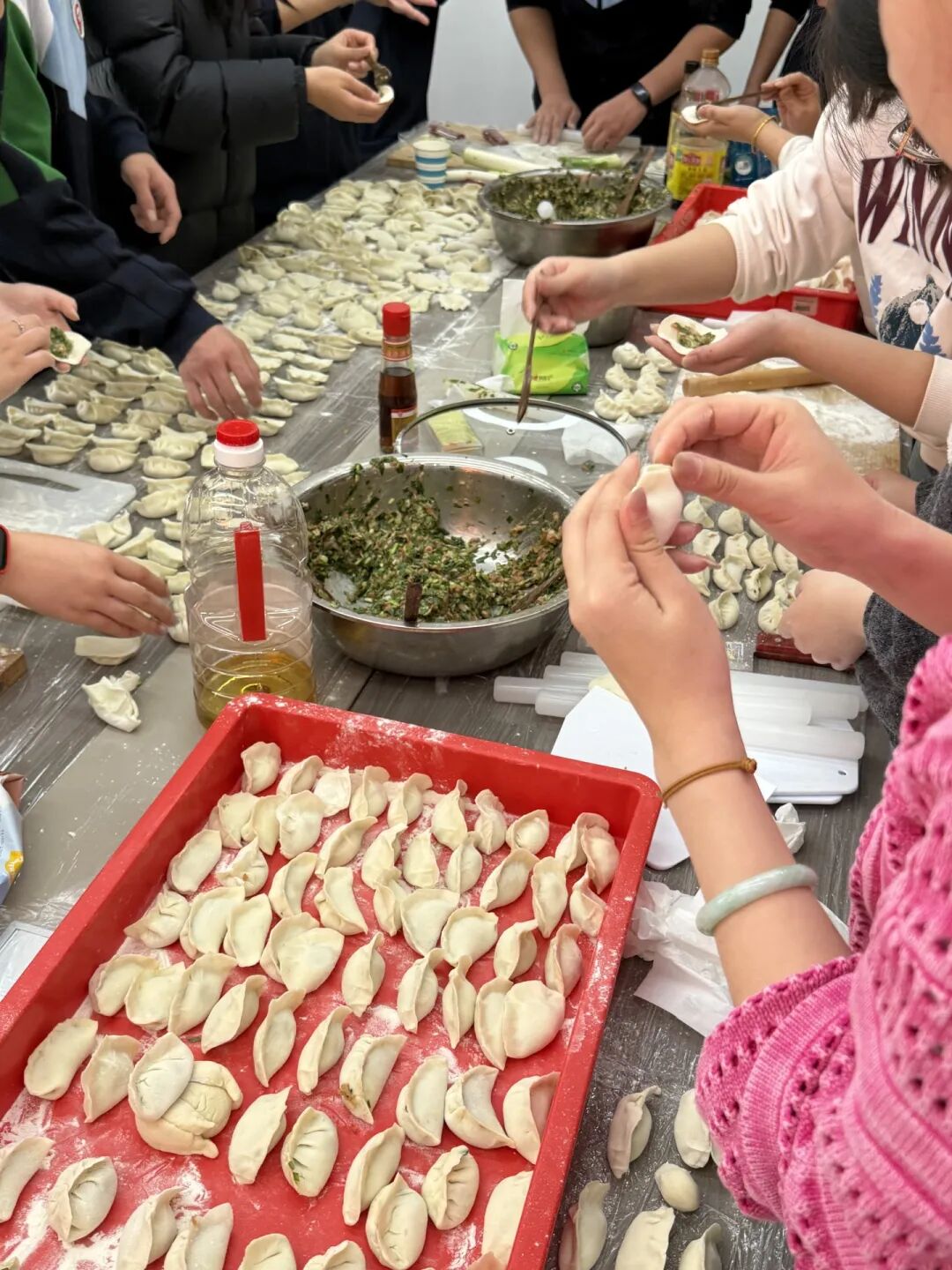 老师们也放下了平日的严肃,教着新手如何捏出漂亮的褶皱,指尖翻飞间,一个个形态各异的饺子便整整齐齐排起了队。