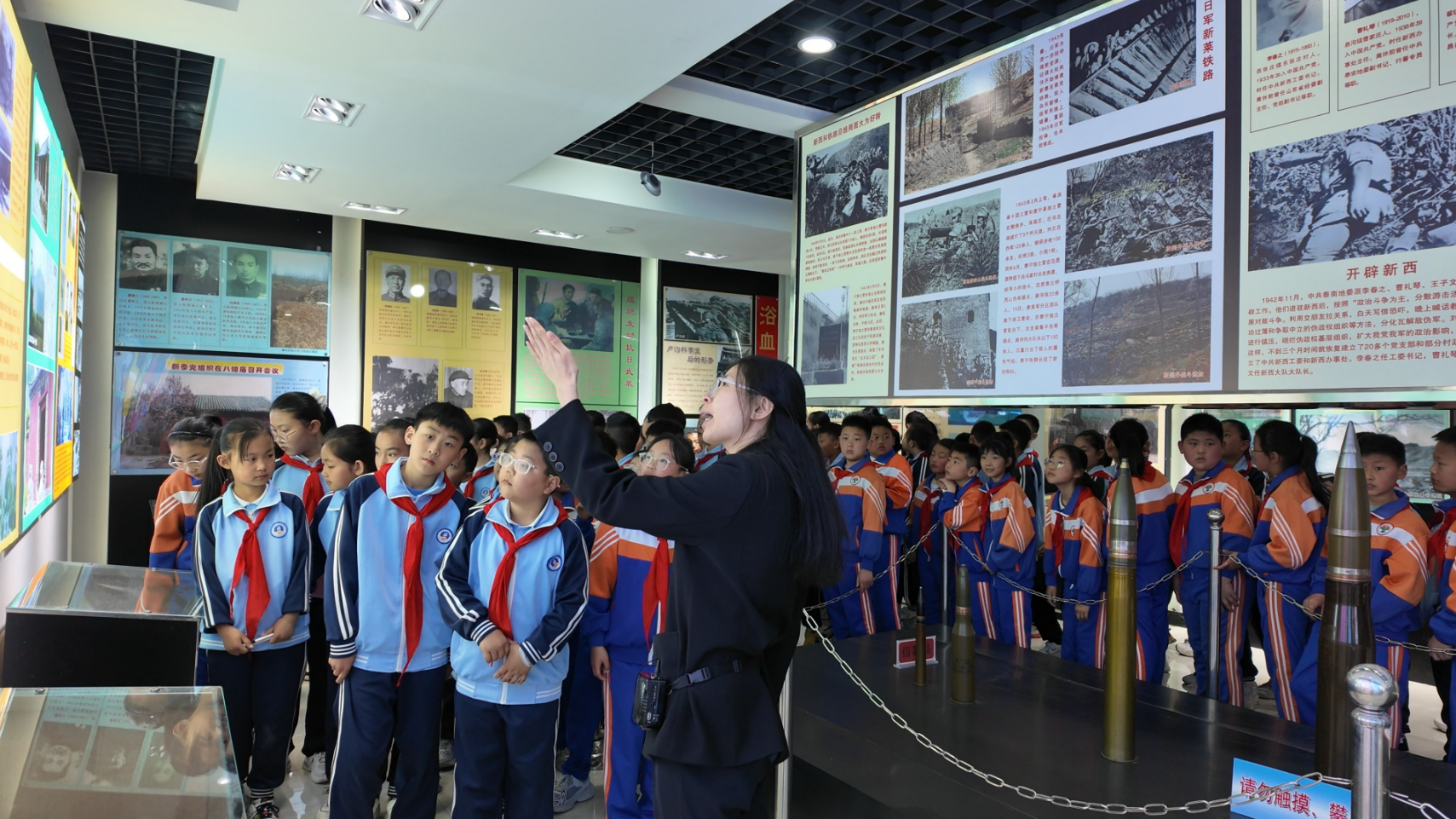 祭英烈仪式结束后,城乡少先队结对共建现场创作活动随即展开。在烈士事迹陈列馆内,一件件斑驳的革命文物、一张张泛黄的历史照片,在柔和的灯光下静静诉说着烽火岁月。少先队员们在讲解员的引导下驻足凝视,仿佛穿越时空,触摸到了那段波澜壮阔的历史。新泰市老教师工作室主任马安超动情地为队员们讲述英烈故事,声音时而激昂、时而低沉,孩子们围成一圈,听得入神。