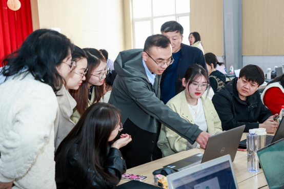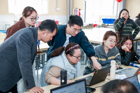 成果展示评价环节,各小组进行说课展示,完整呈现AI辅助教学设计、迭代优化、智能体应用工具融合的全过程,充分展现人机协同、智慧教学的新型课堂样态,实现经验共享、互学互鉴,现场氛围热烈。