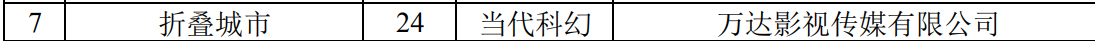万达影视备案科幻剧《折叠城市》,改编自郝景芳同名小说,延续《流浪地球》系列积累的科幻资源与制作经验,探索科幻题材在剧集领域的延伸。