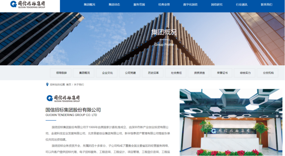 国信招标集团股份有限公司官网介绍,国信招标集团股份有限公司于1999年由原国家计委批准成立,由深圳市新产业创业投资有限公司、金瓷科技实业发展有限公司、北京首都创业集团有限公司、新华恒泰资产管理有限公司等股东单位共同出资组建。国信招标业务资质齐全,所属的四十多家分、子公司构成了覆盖全国主要省区的经营服务网络,可以向客户提供招标代理、电子招标服务、工程咨询、工程设计、项目管理、工程造价咨询、工程监理、投融资咨询与服务、国际贸易等覆盖工程建设项目全产业链的综合服务。