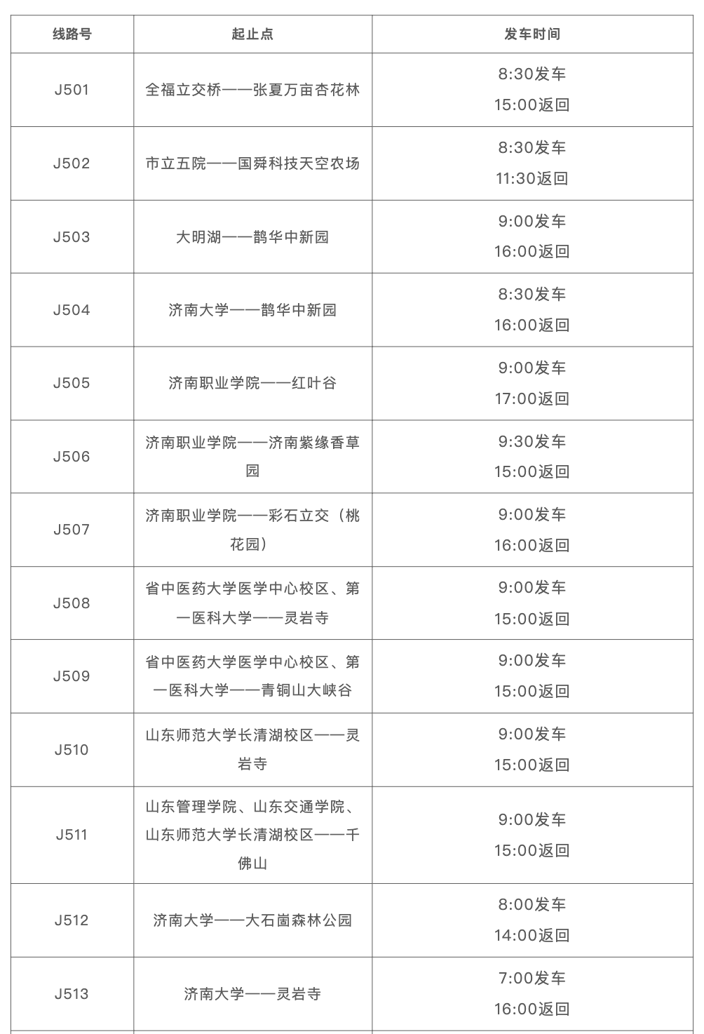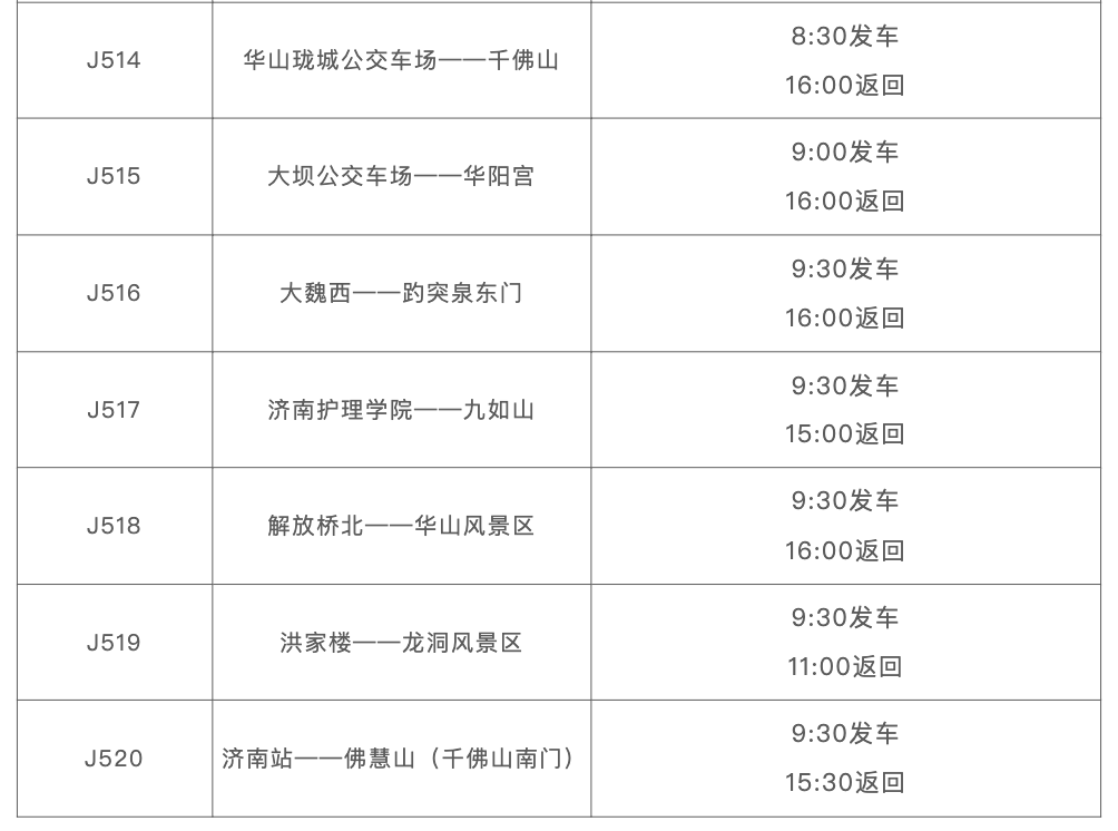 上线20条踏青定制专线,直达千佛山、九如山、张夏万亩杏花林、鹊华中新园、华山风景区、红叶谷、灵岩寺、大石崮森林公园、青铜山大峡谷等景点。市民可通过“济南公交定制公交”微信小程序参与募集,购票满20人即可开通。