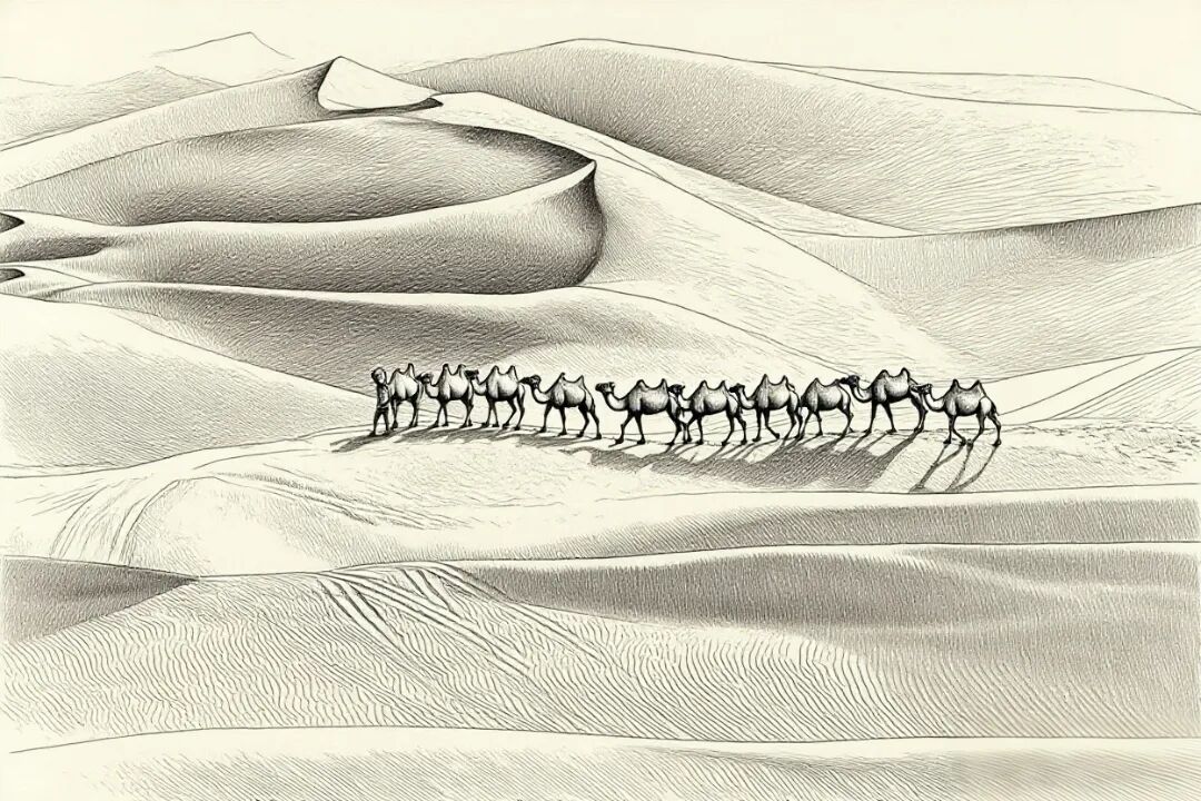 一排骆驼缓缓走过