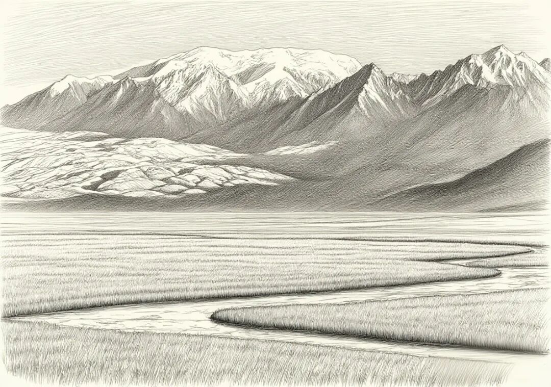 画出达瓦昆沙丘起伏的轮廓