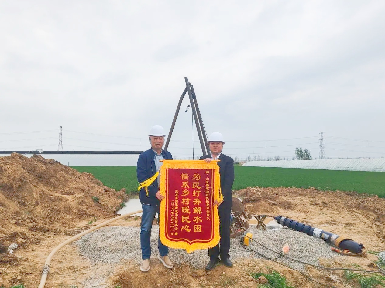 随着钻机轰鸣渐渐平息,清澈的地下水喷涌而出,张庄村300余户村民、2700多亩农田的灌溉用水全面恢复,农田灌溉的燃眉之急彻底化解。村民们纷纷围拢过来,紧紧握住队员们满是泥土的双手,连声致谢,喜悦与感激之情溢于言表。张庄村“两委”将一面印有“为民打井解水困