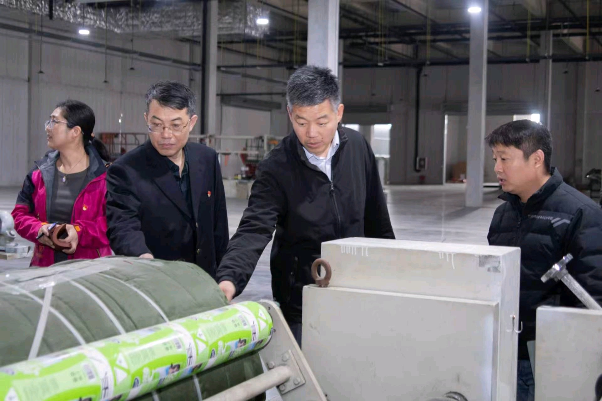 座谈结束后,进入项目厂房实地核查环节,现场体验巡查厂房布局、设备预安装点位,重点了解VOCs产生环节的集气罩设计、废气收集管路走向,以及污染防治设施的安装空间与可行性,既严守生态环保底线,又为企业提供专业技术指导。