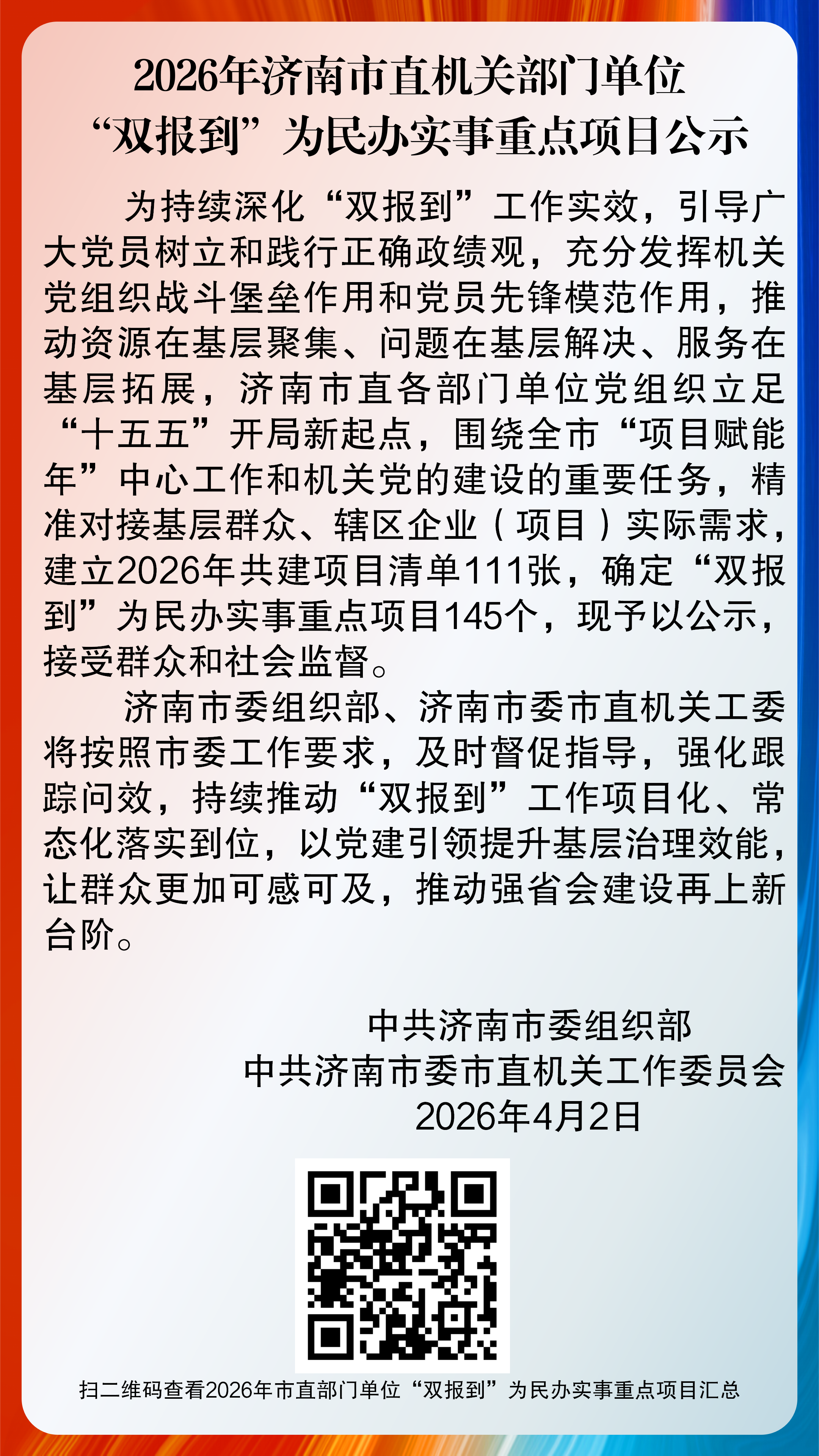 2026年济南市直机关部门单位“双报到”为民办实事重点项目公示
