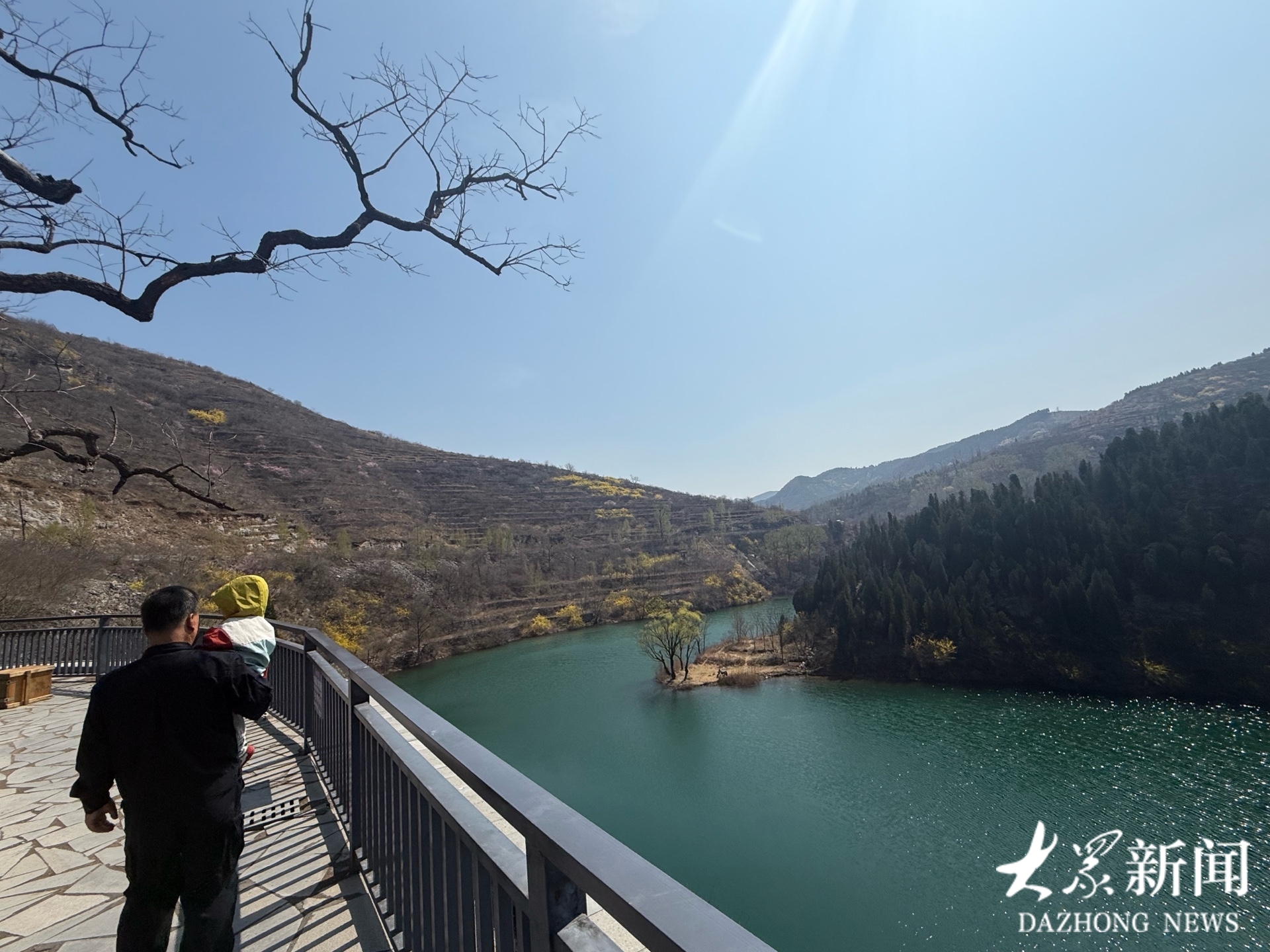 与黄连峪村的山居灵秀不同,镇门峪村的灵气藏在一汪碧水之中。龙门天池旁,游客们举着相机,定格春日的美好,“这里的山清水秀,空气特别好,走在石板路上,能感受到不一样的烟火气,就像走进了一幅水墨画。”来自张店区的游客王女士一边拍照,一边感慨道。村内的明清四合院错落有致,青瓦白墙与山间的繁花相映,既有古村的古朴韵味,又有现代生活的舒适便捷。