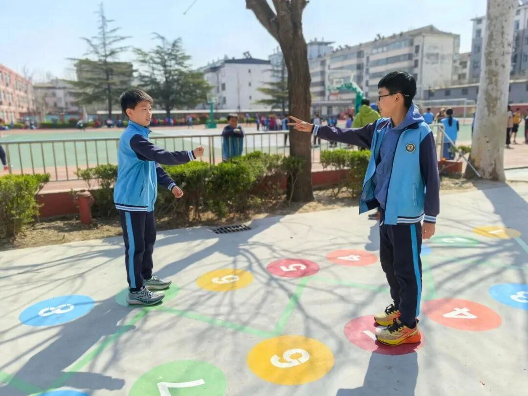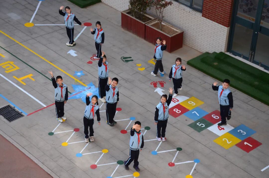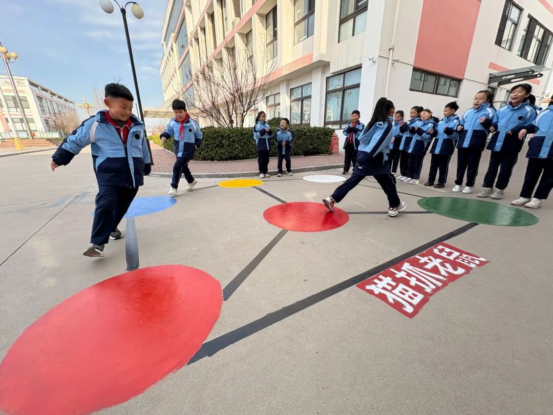 ▲青州市职工子弟学校创新打造“地面游戏+趣味运动”的快乐大课间模式,将传统游戏融入校园地面彩绘,设计闯关跳格、数字对弈、迷宫探索等互动项目,让学生在阳光下舒展筋骨。活动既锻炼了体能与协作能力,又培养了规则意识,课间成为活力满满的育人阵地。