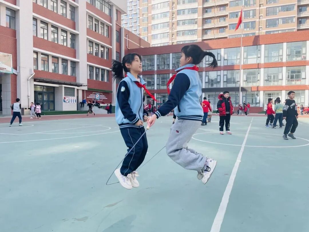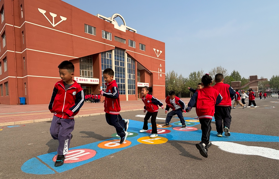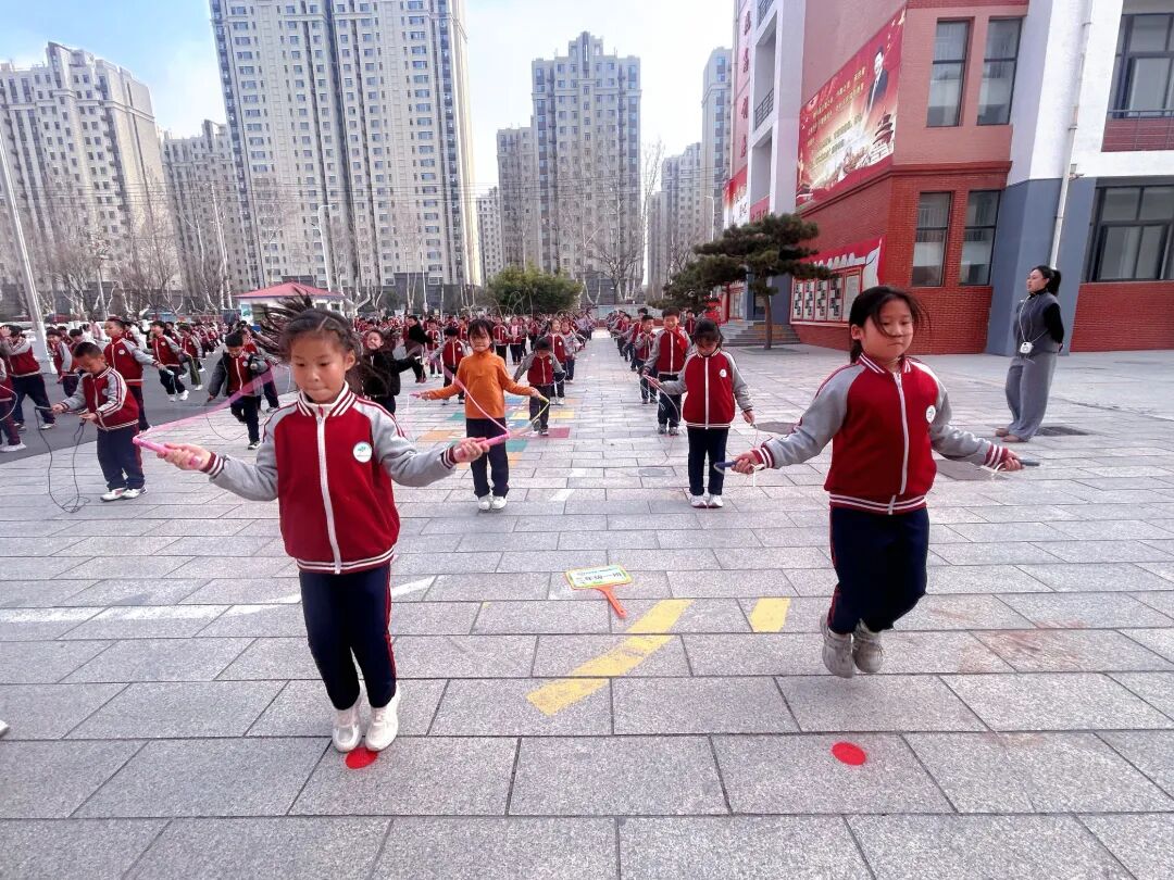▲潍坊锦海小学创新“趣味运动+集体互动”模式,精心打造“活力锦海·悦动课间”特色大课间。学校立足学生身心特点,分学段设计活动内容,开展跳房子、集体跳绳、活力操等项目,以班级竞赛促进全员参与,让学生在运动中强体魄、增情谊。