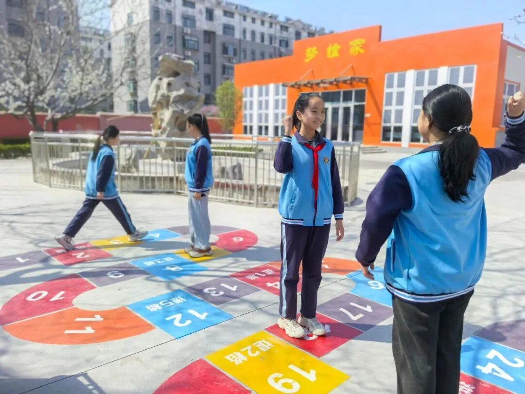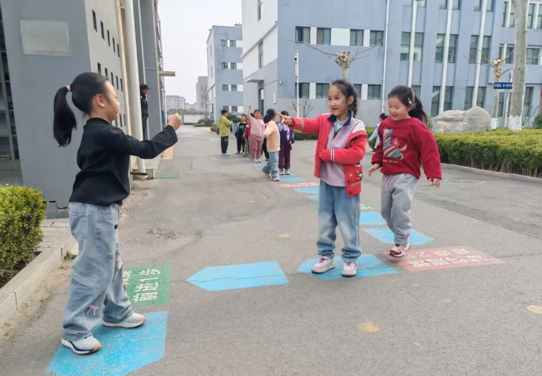 ▲临朐县东城街道文昌小学匠心打造趣味课间新场景。校园精心布设多元跳跃、趣味跑道、障碍接力等动感运动区域,丰富课间活动形式,有效提升学生身体素质与肢体协调能力。同时,充分盘活楼间闲置空地,融入垃圾分类、消防安全、文明礼仪、二十四节气等主题文化元素,让方寸校园处处有教育、步步皆成长。