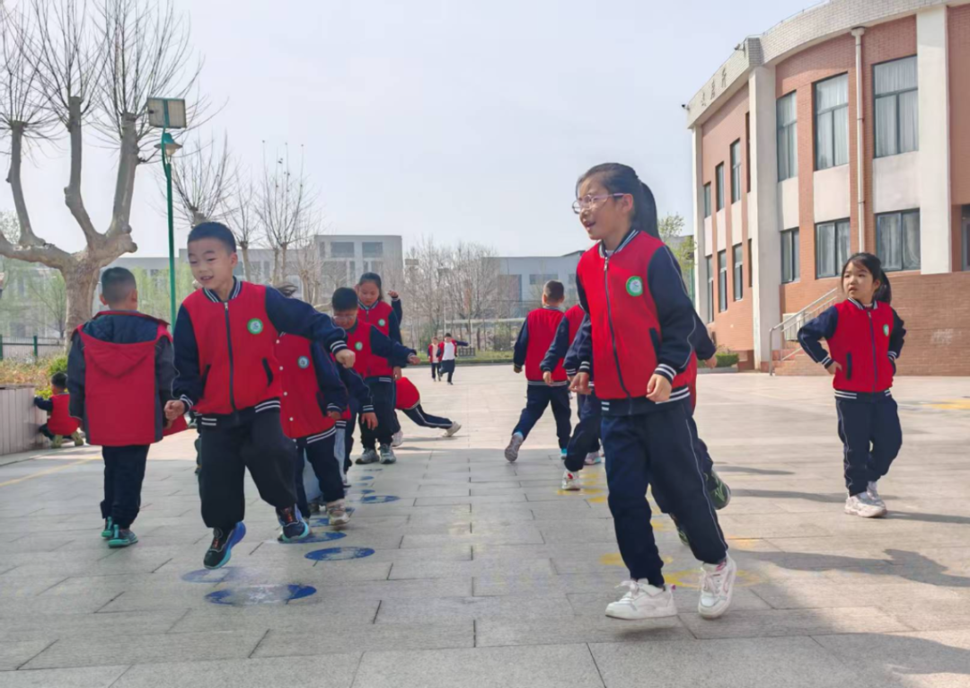 ▲诸城市文化路小学精心打造“快乐大课间”,结合学生兴趣与年龄特点,开展丢手绢、跳房子、桃花朵朵开等趣味游戏,让学生在玩乐中强健体魄、增进协作,全面落实“健康第一”教育理念。