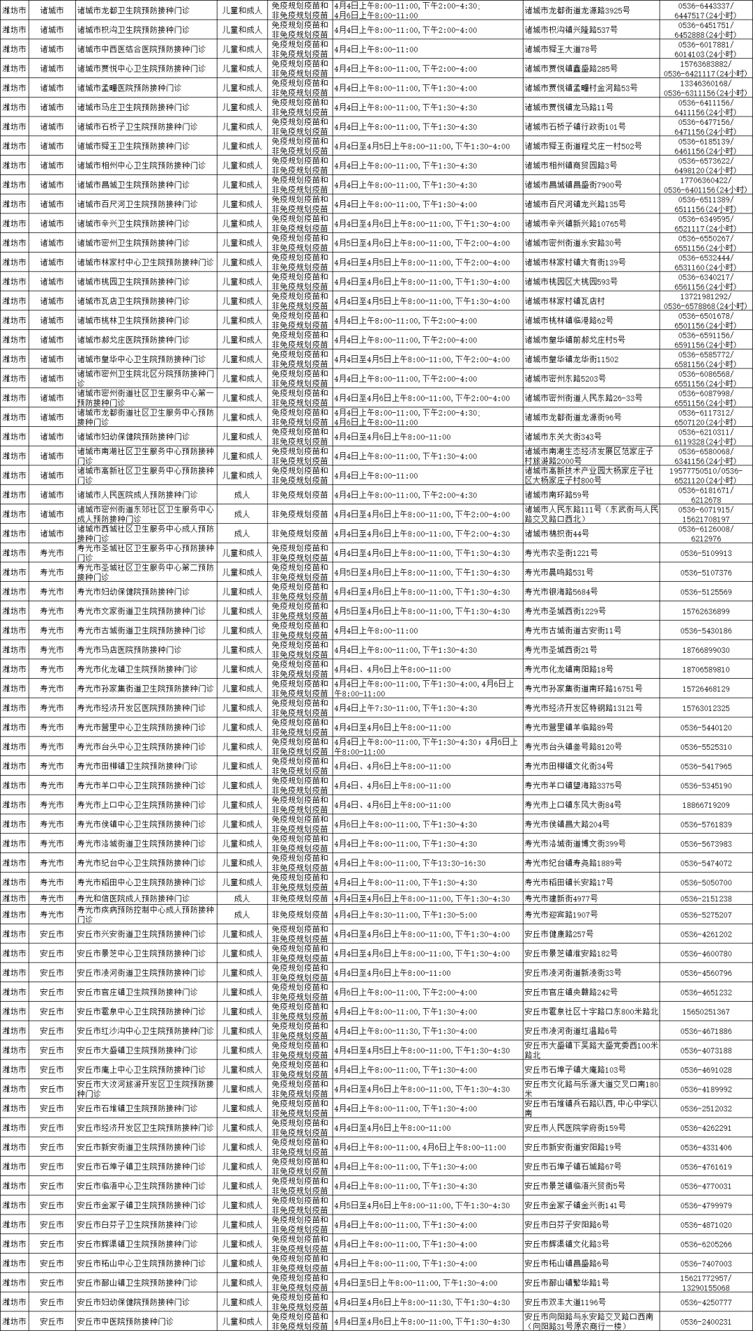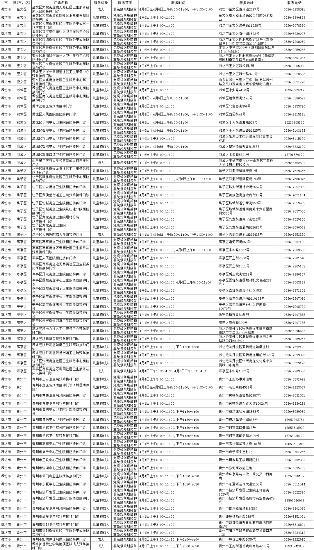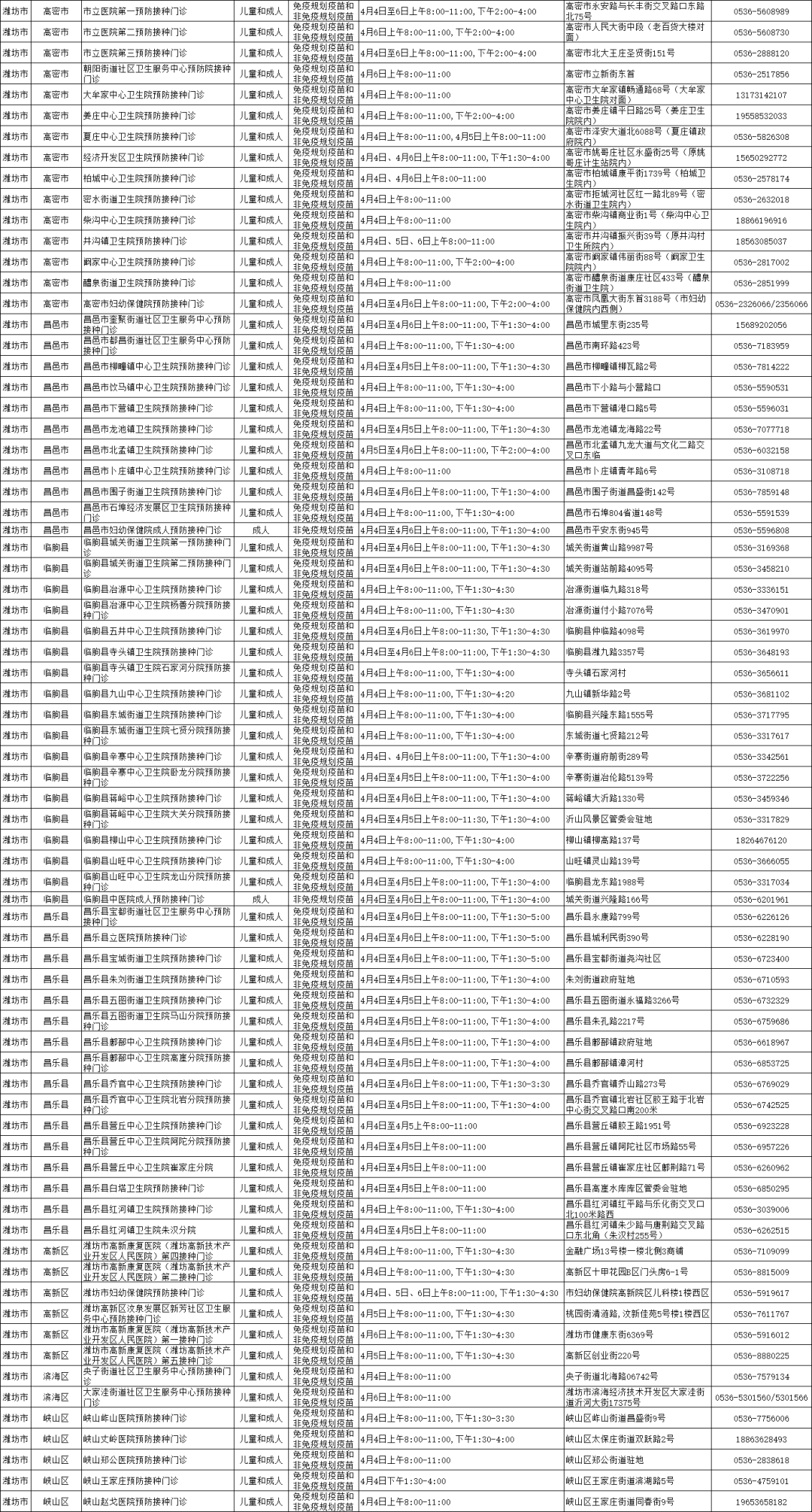 清明节期间(2026年4月4日-4月6日),为满足群众疫苗接种需求,现将潍坊市预防接种单位开诊安排公示如下,请有接种需求的群众合理安排时间接种!预防接种单位公示